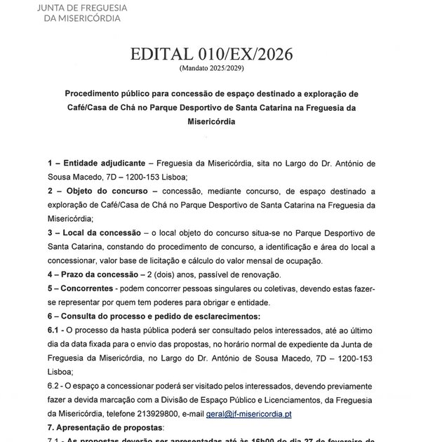 A Junta de Freguesia da Misericórdia, procurando melhorar os serviços prestados à comunidade no âmbito das suas ...