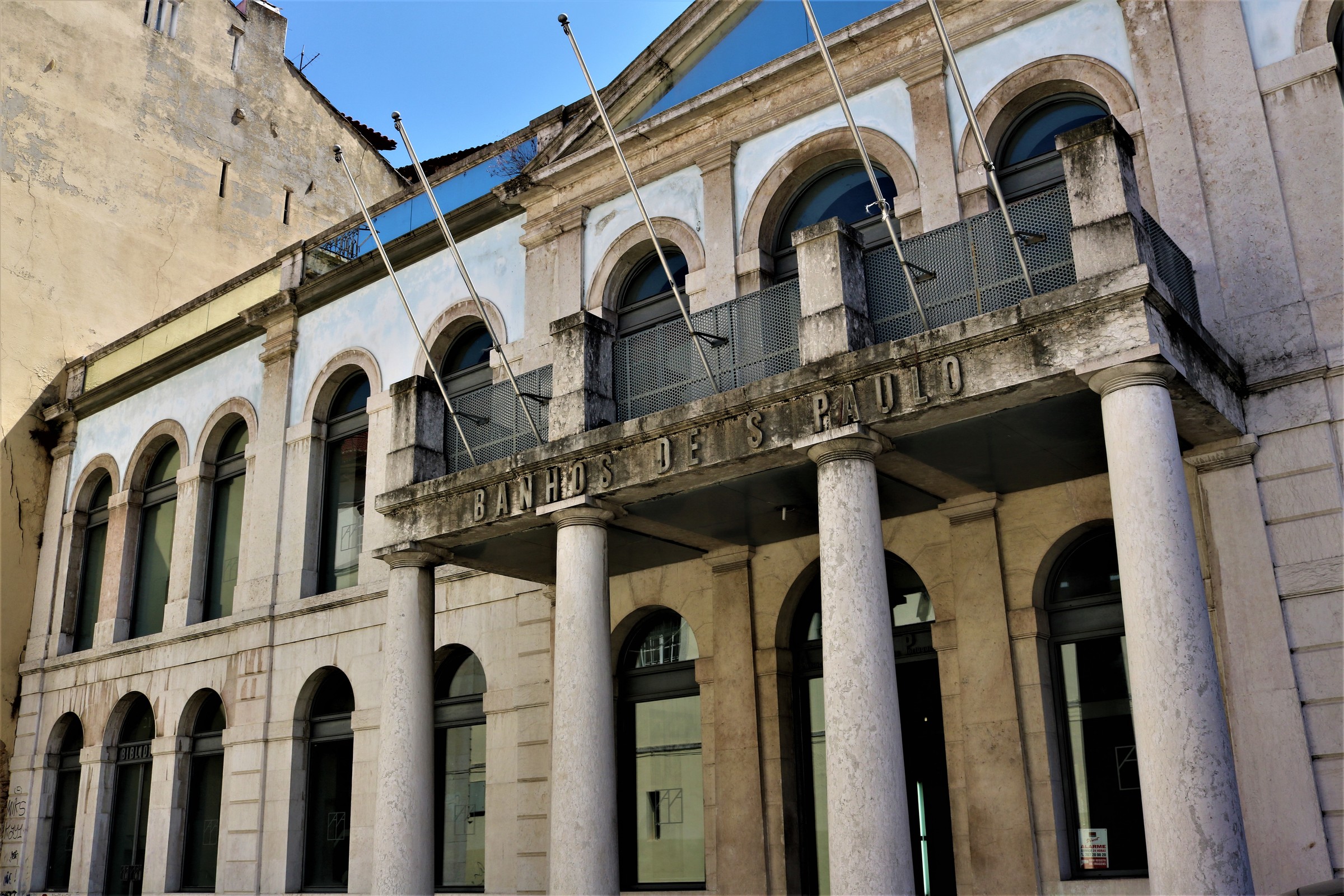 Mandado construir pela Santa Casa da Misericórdia de Lisboa, a partir de 1850, sob projeto de Pézerat, o edifício dos Banhos de São Paulo tinha por objetivo aproveitar uma nascente de águas medicinais que havia sido descoberta junto à ala Poente da Praça do Comércio. Traduzindo uma linguagem tardo-neoclássica, é um edifício de grande solidez, elegância e simplicidade, apresentando planta retangular, organizada em torno de um pátio central, coberto por clarabóia com estrutura de ferro, cuja fachada principal, ampla, surge desenvolvida em 2 pisos, ritmados verticalmente por pilastras, e rematada por platibanda e frontão triangular reto. Ao nível da cobertura é visível o volume cúbico do antigo depósito de água, assim como a alta chaminé cilíndrica das caldeiras, construídas em tijolo. No interior, dispunha de 59 tinas e possuía os equipamentos mais modernos para a época, sendo considerado um dos melhores da Europa.