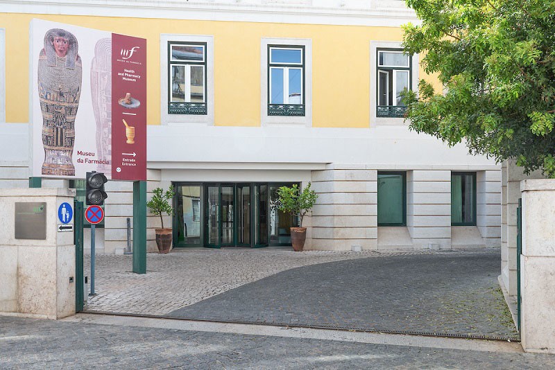 O museu dispõe de loja e restaurante. Está sedeado no Palacete de Santa Catarina, um palacete oitocentista, construído depois de 1862 por José Pedro Colares Pereira, proprietário da “Metalúrgica Vulcano e Colares”, foi vendido, no final do séc. XIX, ao industrial Alfredo da Silva, passando posteriormente para o seu genro D. Manuel da Silva. Durante anos as várias utilizações do palacete estiveram na origem da sua degradação e das alterações introduzidas ao projeto inicial. No final do séc. XX este palacete de Sta. Catarina, assim como o imóvel contíguo, com frente para a Rua Dr. Luís de Almeida e Albuquerque e para a Tv. de Sta. Catarina, foram adquiridos pela Associação Nacional das Farmácias, que os recuperou procurando valorizar as suas características, no sentido de aí instalar alguns dos seus serviços, entre os quais se destaca o Museu da Farmácia, inaugurado em 1996, cujo acervo permite compreender a história da farmácia, assim como a evolução das ciências e técnicas farmacêuticas ao longo dos séculos. O palacete, cuja fachada surge dividida em 3 panos separados por 2 pilastras de cantaria e delimitados lateralmente por cunhais, também, de cantaria, desenvolve-se em piso térreo e andar nobre, separados por cornija, caracterizados por vãos de janela de peito abertos a um ritmo regular, o qual é interrompido pelos 2 portais centrais de arco de volta perfeita no piso térreo. A rematar o edifício temos uma cornija saliente, coroada por balaustrada, interrompida, no pano central da fachada, por frontão triangular vazado por óculo iluminante. O jardim, local onde se erguia a antiga Igreja de Santa Catarina, encontra-se vedado por um muro com gradeamento em ferro, no interior do qual se evidenciam altos candeeiros de bronze fundido com cariátides.