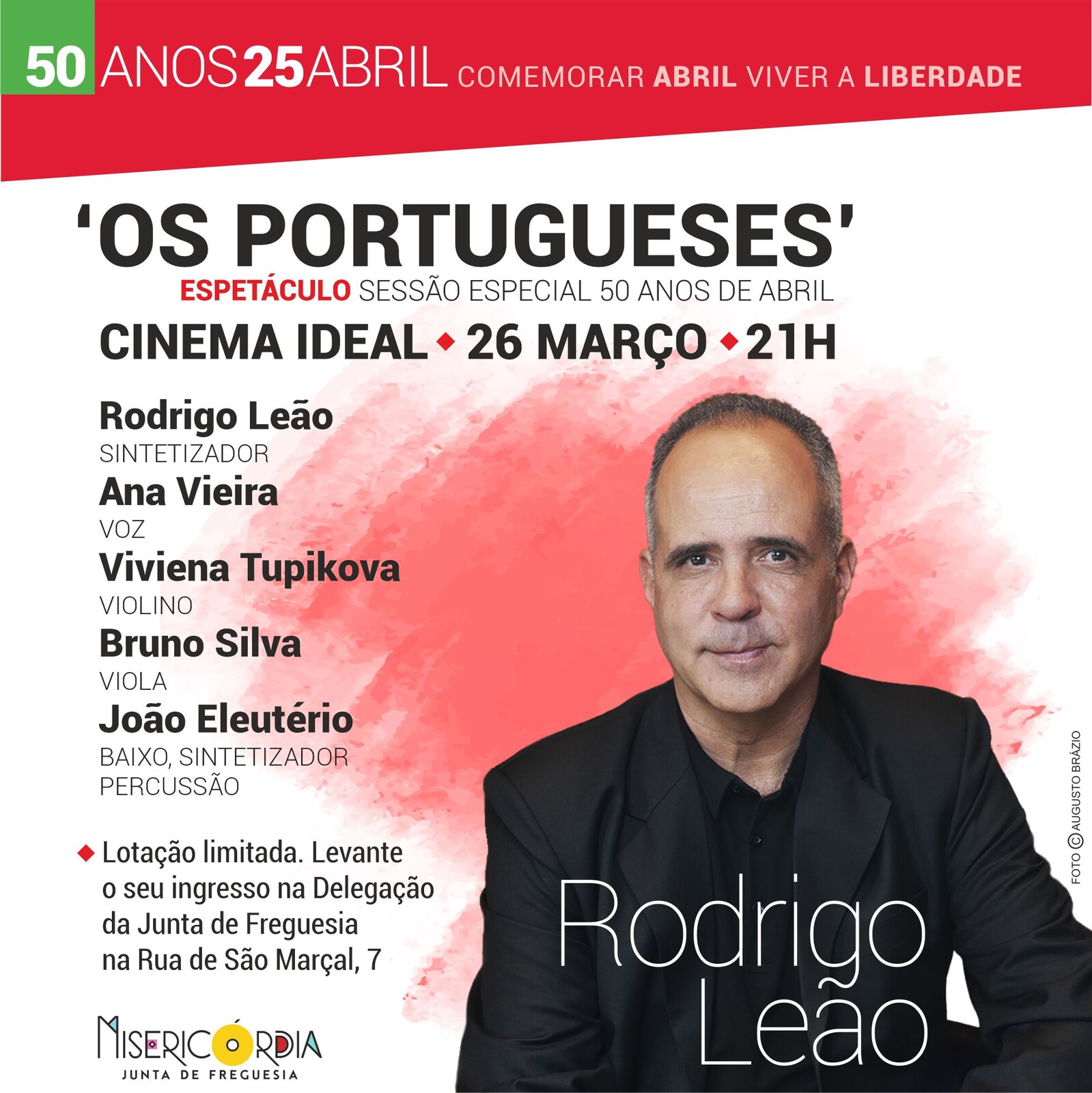 Com o espetáculo, ‘Os Portugueses - Sessão Especial 50 anos de Abril’, a realizar no dia 26 de março, a partir das 21 horas, no Cinema Ideal, a Junta de Freguesia da Misericórdia inicia as comemorações do 50.º aniversário da revolução dos cravos.