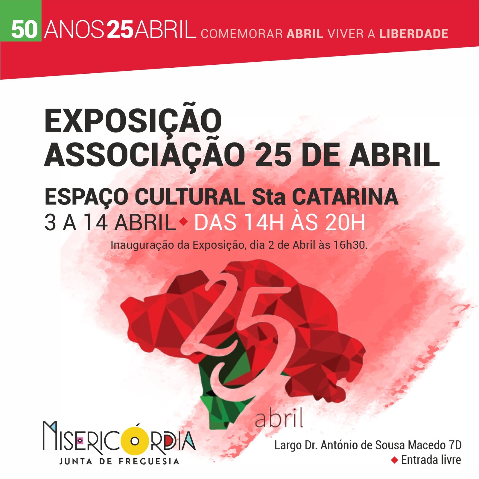 No âmbito das comemorações dos 50 anos do 25 de Abril, no próximo dia 3, pelas 16 horas, no espaço Santa Catarina, é inaugurada a exposição da Associação 25 de Abril.