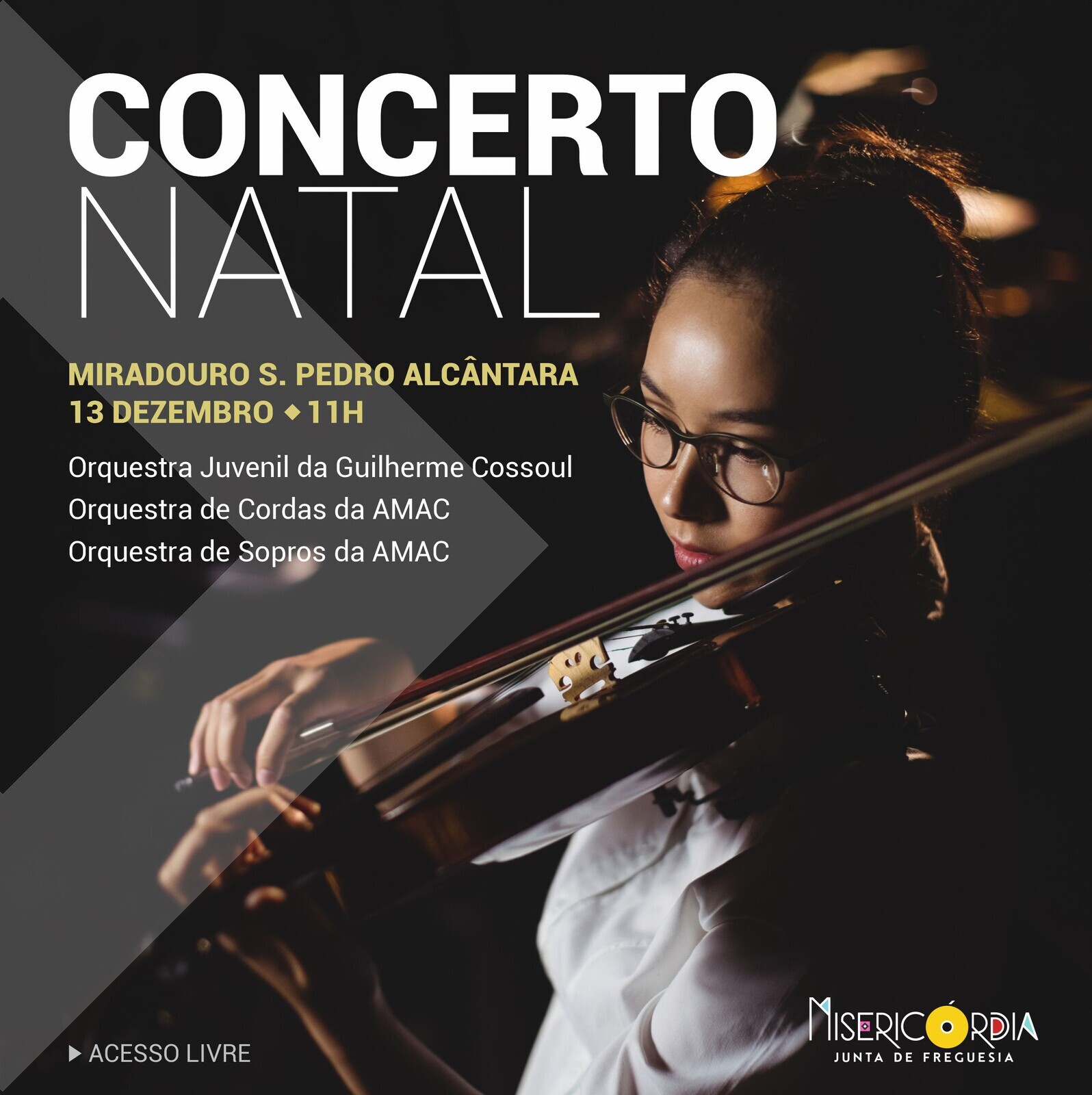 A Orquestra de Cordas e a Orquestra de Sopros da AMAC e a Orquestra Juvenil da Guilherme Cossoul trazem-nos um programa diversificado que celebra a história, a magia e a alegria da época natalícia, numa oportunidade para fortalecer os laços comunitários.