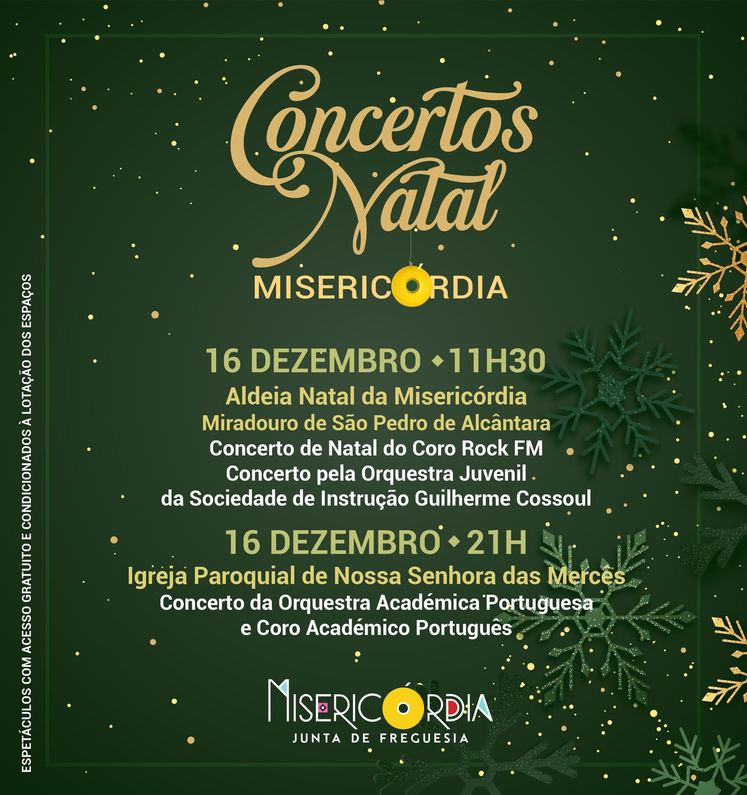 No dia 16 de dezembro, a partir das 11h30, na Aldeia de Natal da Misericórdia (no Miradouro de São Pedro de Alcântara), e na Igreja Paroquial de Nossa Senhora das Mercês, a partir das 21 horas, a Junta de Freguesia da Misericórdia proporciona a partilha da qualidade artística dos intérpretes, com o valioso património do nosso território.