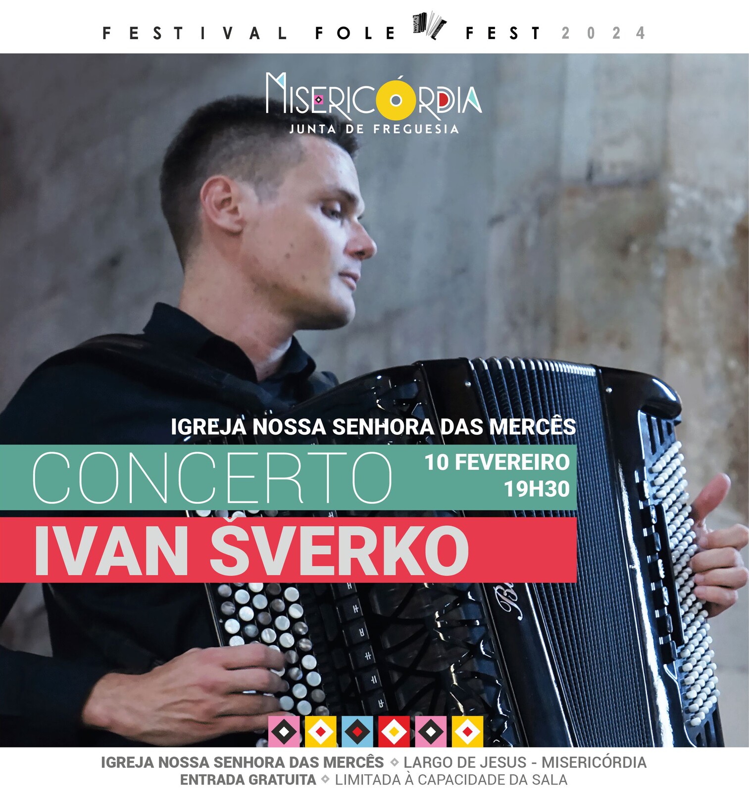 A Junta de Freguesia da Misericórdia promove no próximo dia 10 de fevereiro, na Igreja Nossa Senhora das Mercês, um promissor concerto pelo acordeonista Ivan Šverko, inserido no Festival Folefest 2024.