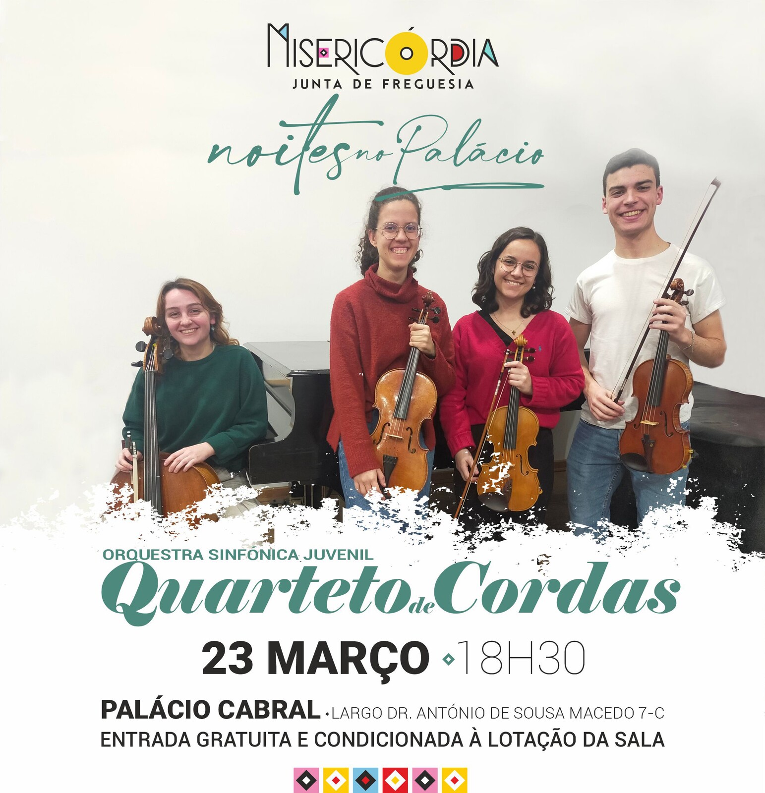 Neste concerto, o jovem Quarteto de Cordas da Orquestra Sinfónica Juvenil, interpreta, entre outras, obras de Mozart, Boccherini, Bach, Shostakovitch, Richardy e Gardel.