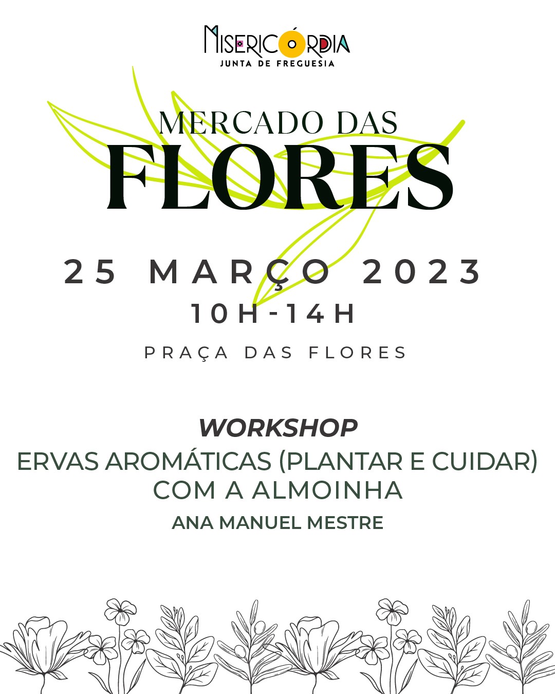 Esta iniciativa da Junta de Freguesia da Misericórdia que se realiza a título experimental no dia 25 de março, entre as 10h00 e as 14h00, conta com bancas de floristas sediados na freguesia, um workshop para aprender a plantar e cuidar de ervas aromáticas, com Ana Manuel Mestre.