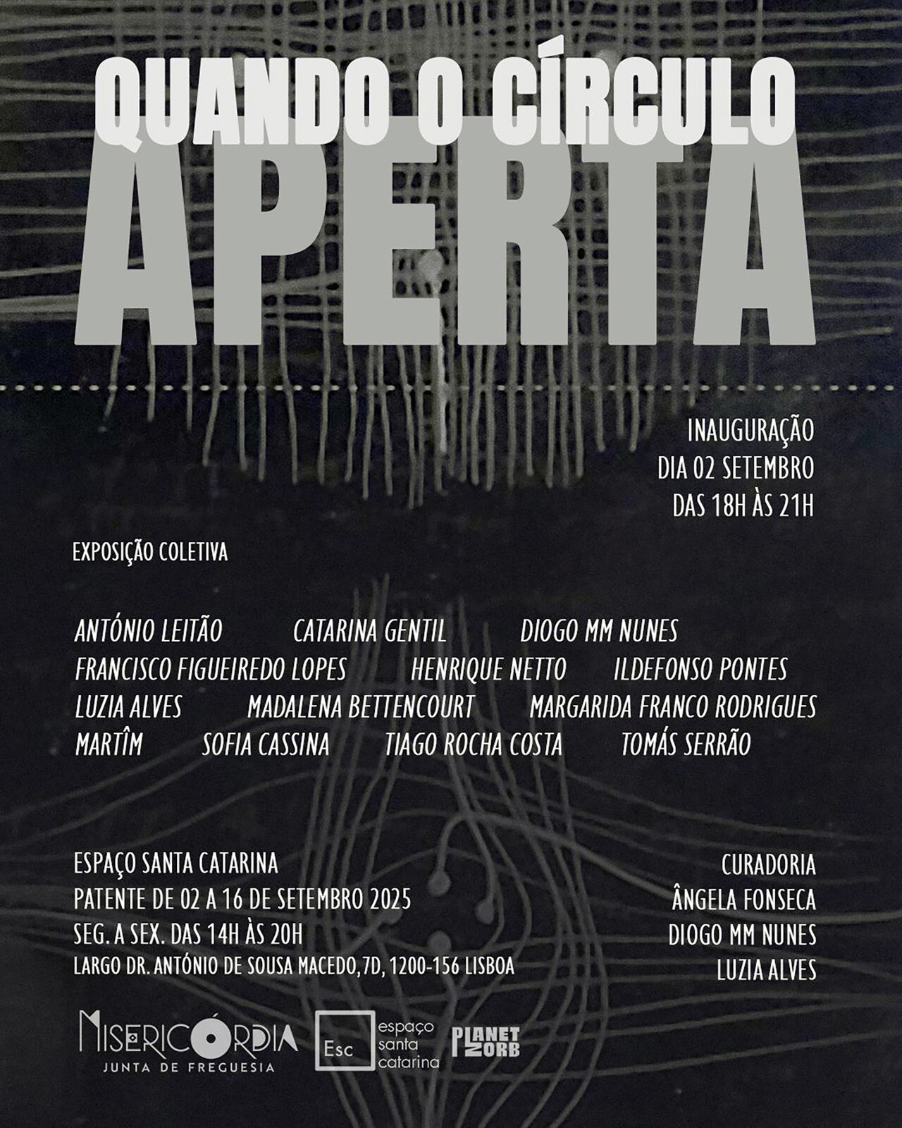 ‘Quando o Círculo Aperta’ é uma mostra de arte contemporânea que oferece um lugar de reflexão sincero e reconhece onde cada artista se encontra face às diversas crises que se manifestam silenciosamente sob a forma de repressões raciais, de género, tecnológicas, ecológicas, culturais ou históricas, enquadradas no período de ‘soft fachism’ atual que ameaça a progressão de uma sociedade segura, justa e livre.