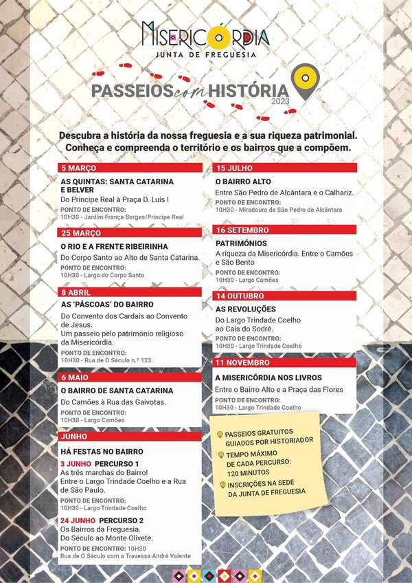 Com início a 5 de março e até 11 de novembro de 2023, a Junta de Freguesia da Misericórdia promove 10 visitas guiadas pelo ... -