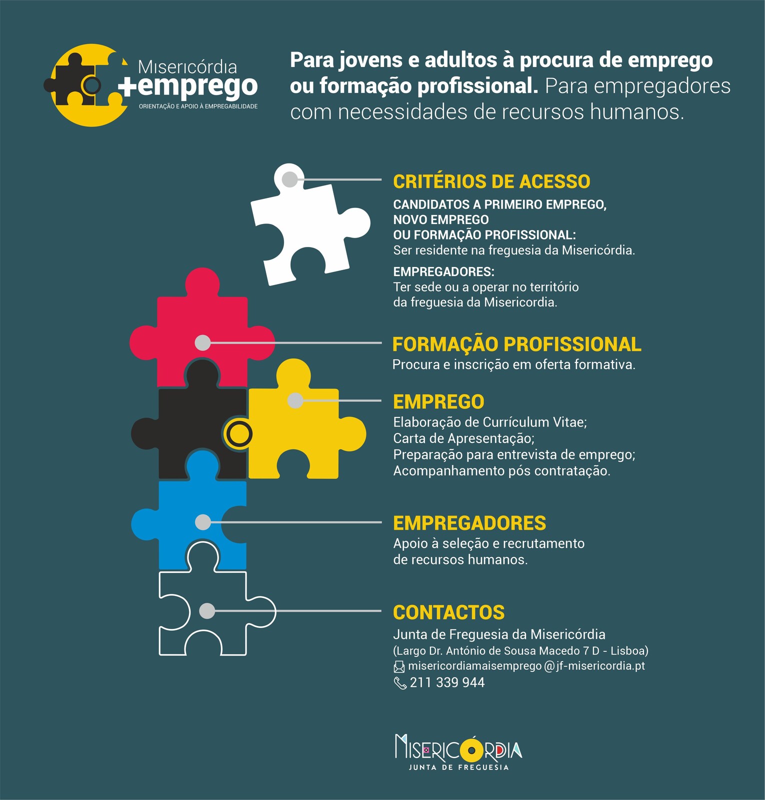Mantendo uma relação cada vez mais próxima com a comunidade residente e com as entidades empregadoras a operar no seu território, a Junta de Freguesia da Misericórdia colocou à disposição o serviço ‘Misericórdia +Emprego’, possibilitando aos seus moradores e empregadores, de forma gratuita, o acesso à procura e oferta de emprego, preferencialmente na sua área geográfica.