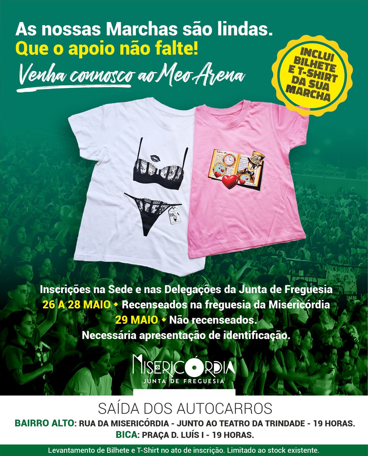 Para apoiar a sua marcha, a Junta de Freguesia da Misericórdia abre a partir das 12 horas do dia 26 e até ao dia 28 de maio, as inscrições exclusivas para recenseados na freguesia da Misericórdia e que incluem o bilhete de ingresso no pavilhão + T-shirt da sua marcha. No ato da inscrição é necessária apresentação de identificação.