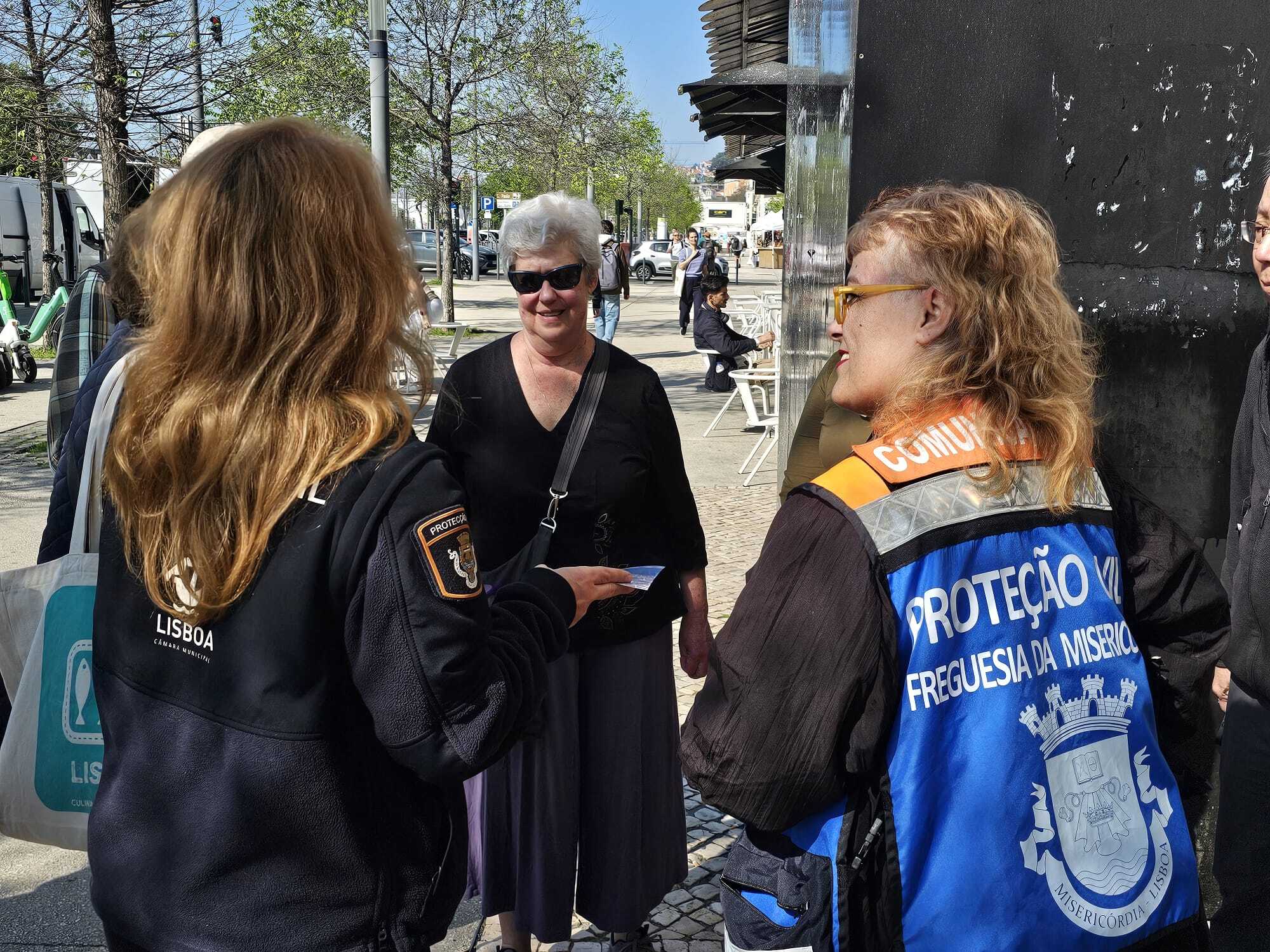 Na frente ribeirinha da freguesia da Misericórdia, os voluntários da Unidade Local de Proteção Civil procederam à sensibilização dos transeuntes para a importância da adoção de procedimentos de emergência, encaminhando-os para os pontos de encontro, instalados no Largo do Barão de Quintela e Largo de São João de Nepomuceno.