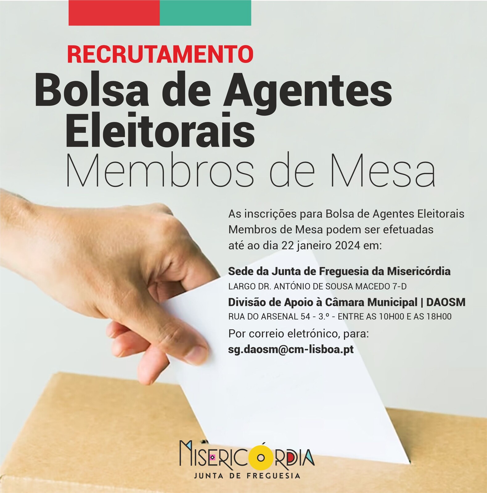 De acordo com o Edital N.º 1 de 2024, do Município de Lisboa, encontram-se abertas as inscrições para recrutamento de agentes eleitorais | Membros de Mesa.