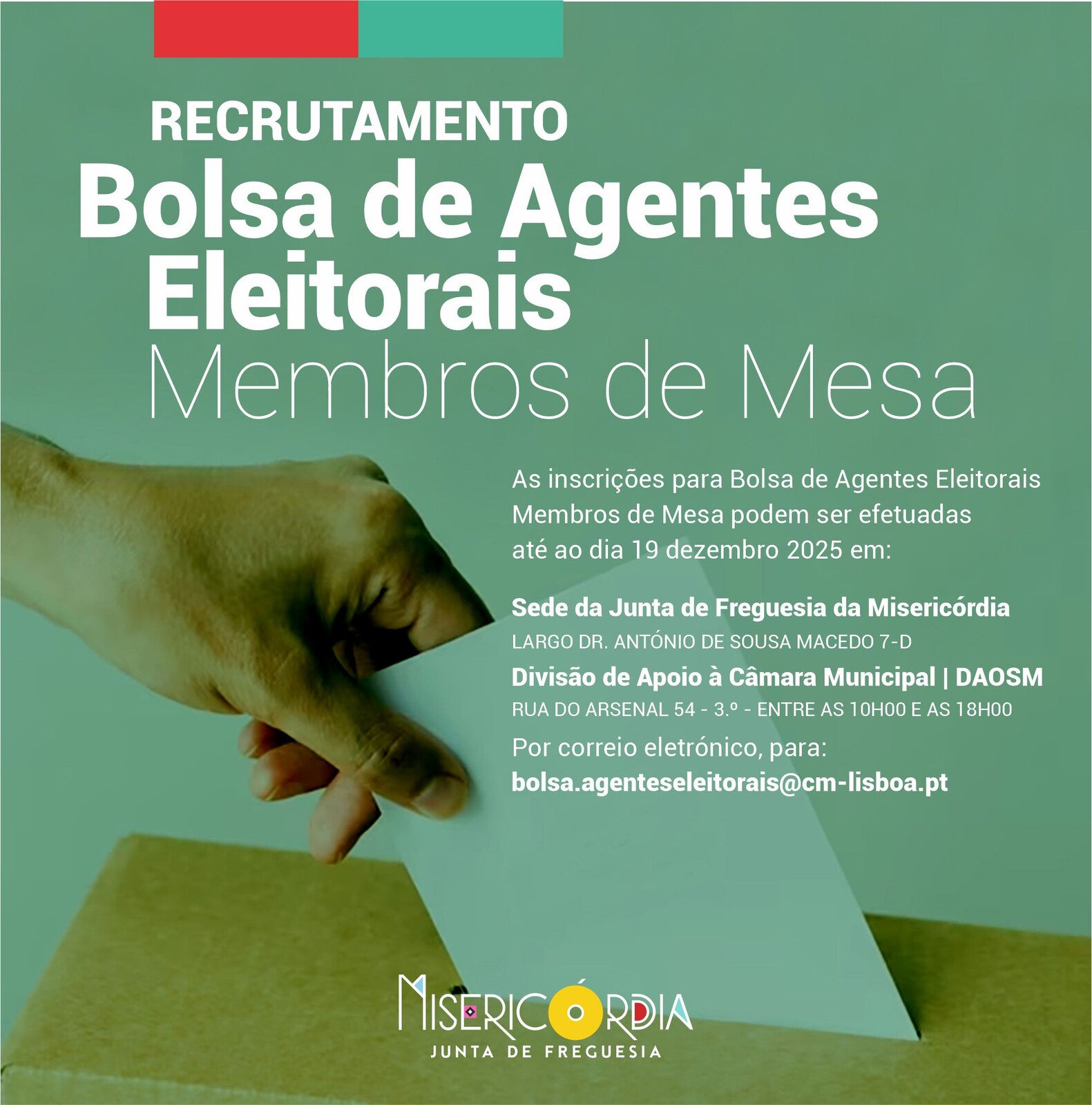 - Pelo endereço eletrónico: bolsa.agenteseleitorias@cm-lisboa.pt