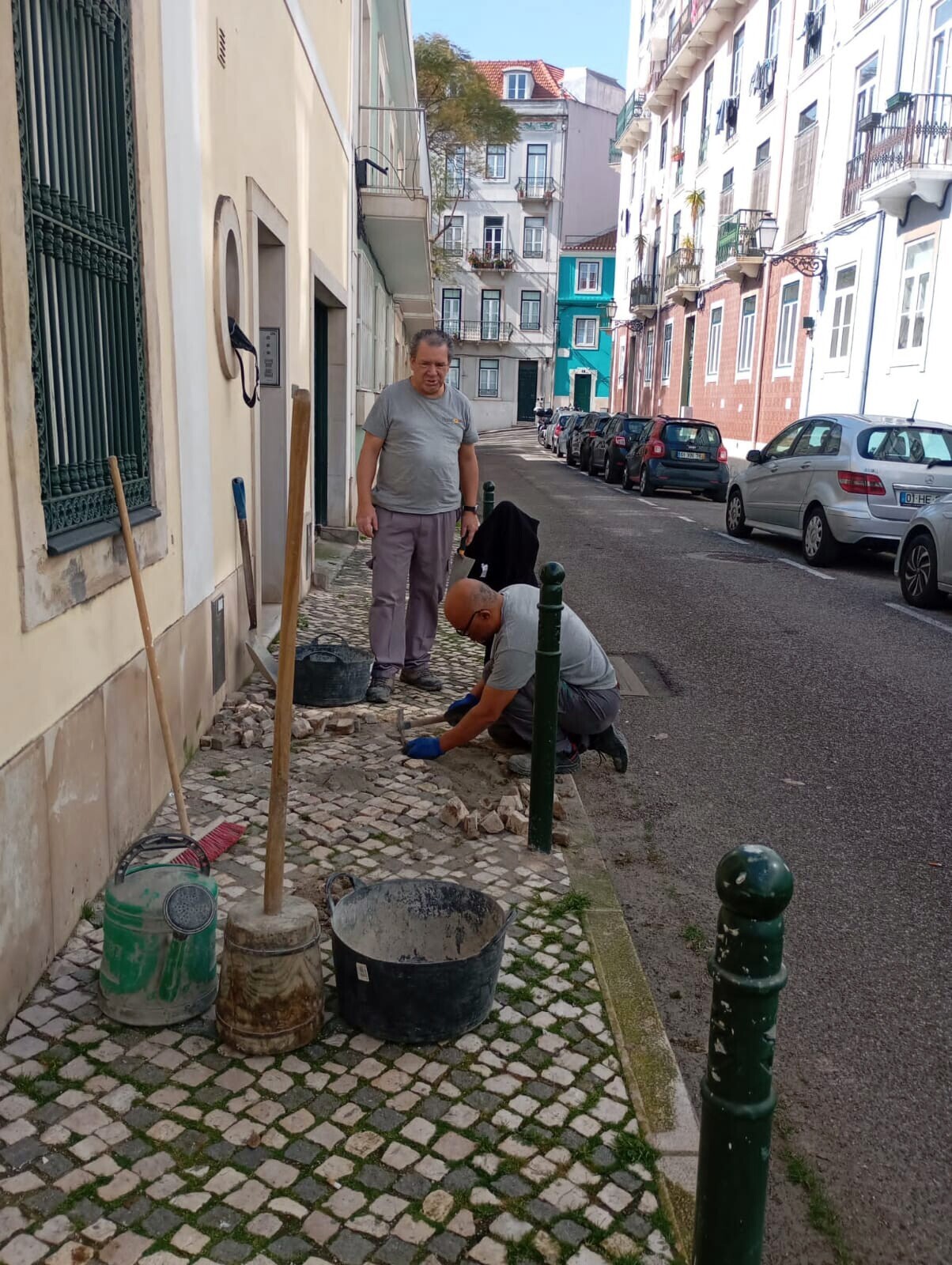 A equipa de Espaço Público da Junta de Freguesia da Misericórdia continua as operações de reposição de calçada em áreas pedonais, severamente afetadas pelas condições meteorológicas que tem provocado abatimentos de piso ou pela conduta irregular de alguns automobilistas, que utilizam o já reduzido espaço de circulação pedonal para estacionamento ou outras manobras.