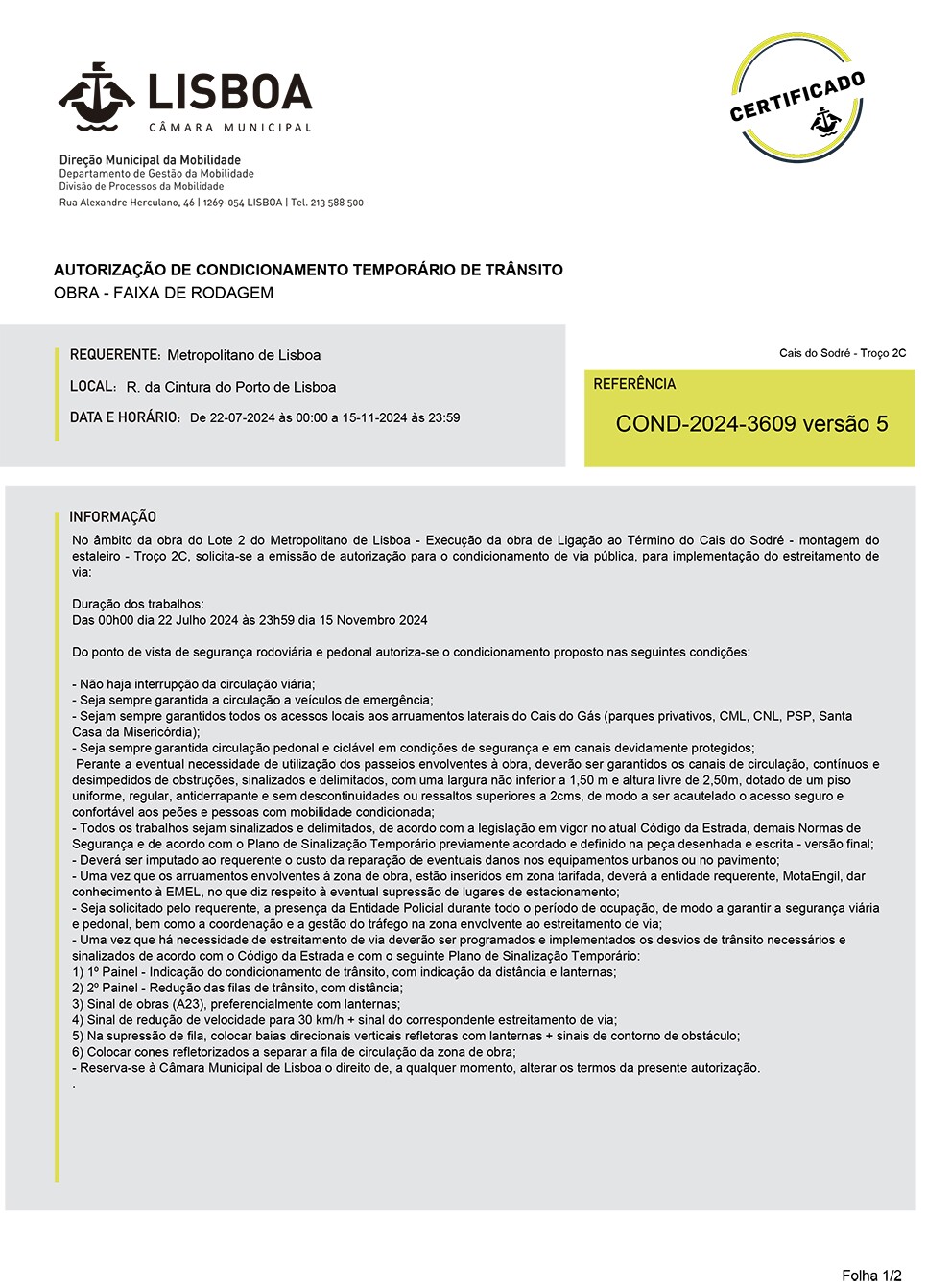 cond_2024_3609_4_ condicionamento desvio Metro lote 2 r cintura do porto de lisboa