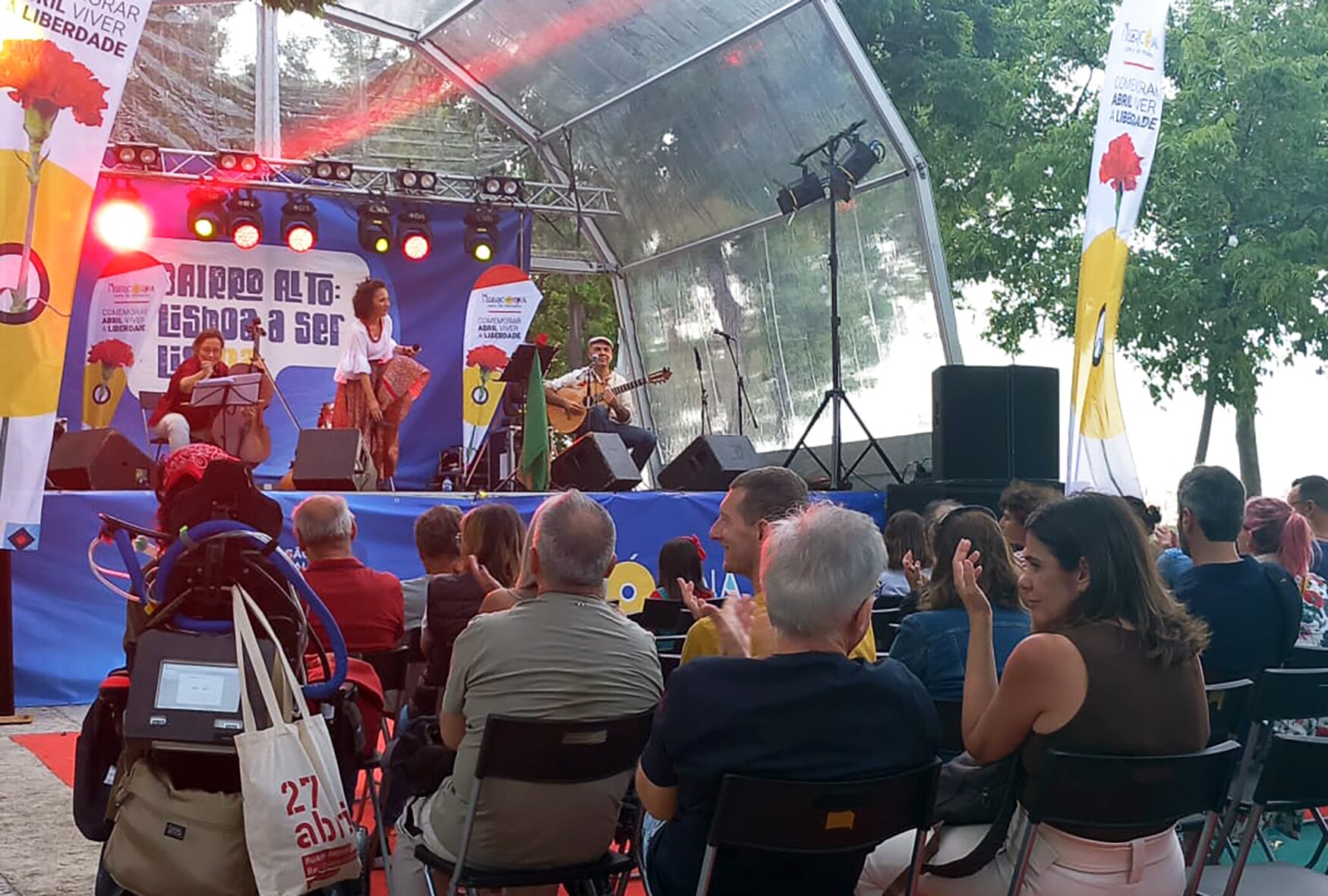 Os espetáculos no Miradouro de S. Pedro de Alcântara, inseridos no programa de comemoração do 25 de Abril, terminaram hoje com a atuação do grupo Canto Ondo. Um concerto marcado pelo cantar de poetas que nos inspiram e pela inconfundível voz de Tânia Cardoso.