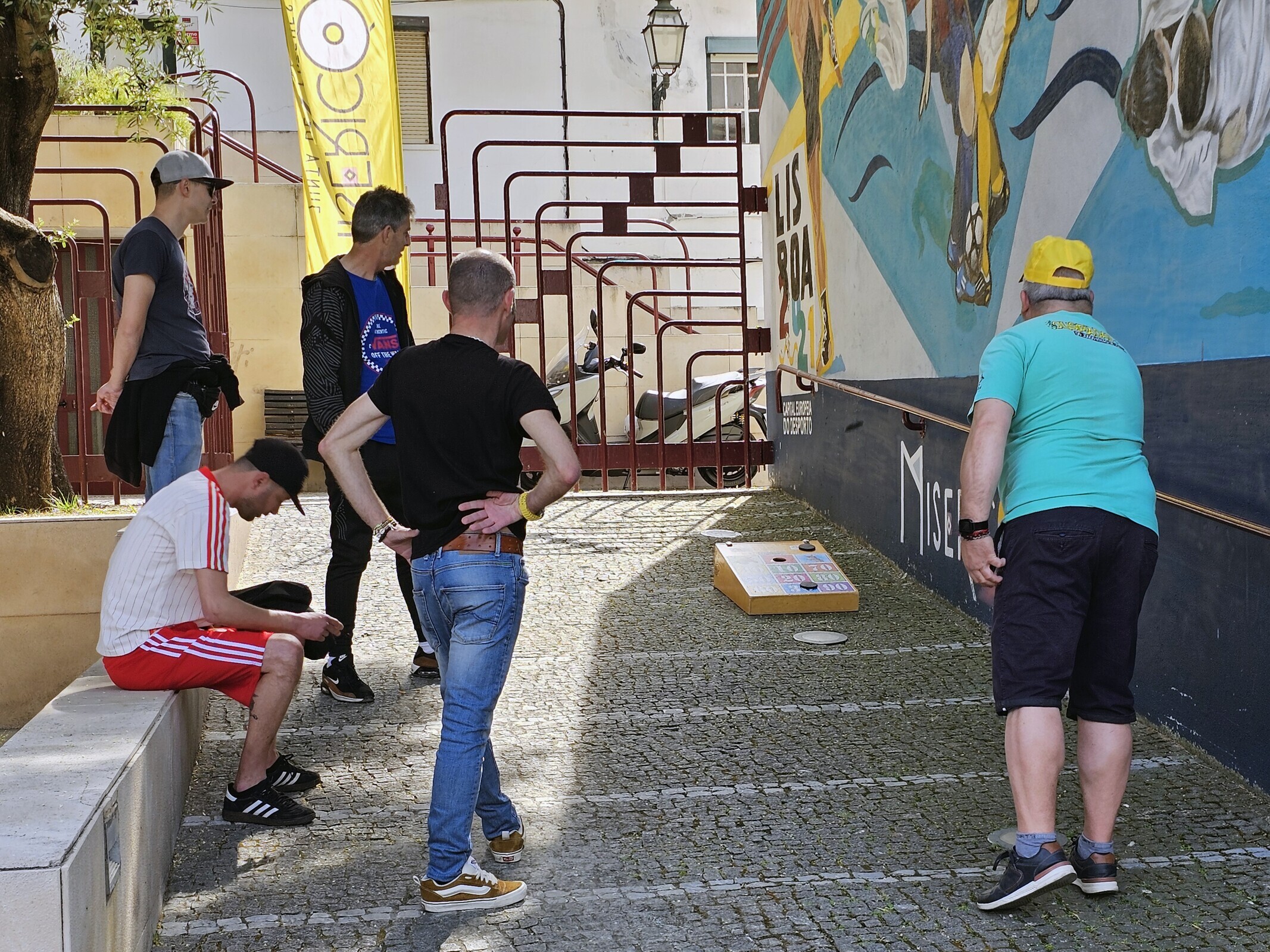 Depois, enquanto alguns se dedicaram ao lazer, com os jogos de mesa a ajudar a pôr as conversas postas em dia, outros treinaram a concentração e a pontaria, derrubando pinos no jogo da Malha ou experimentando a habilidade de ‘espetar o prego’.