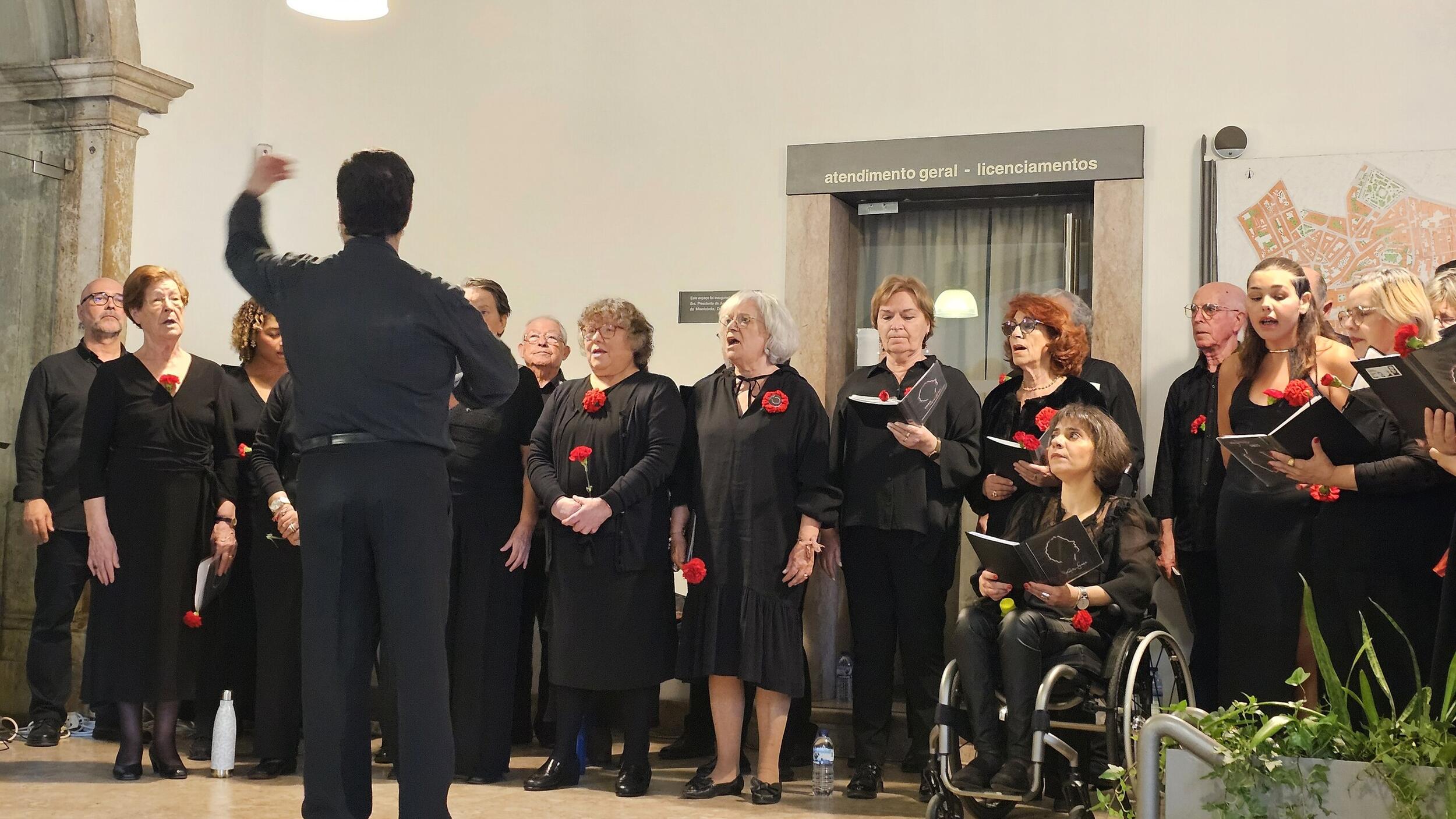 O Coro Lopes-Graça, presença habitual nas nossas comemorações de Abril, trouxe-nos as peças musicais do maestro Fernando Lopes-Graça, como o grande hino à Liberdade 'Acordai', passando ainda por canções de Zeca Afonso, com arranjos do Maestro Lopes-Graça.