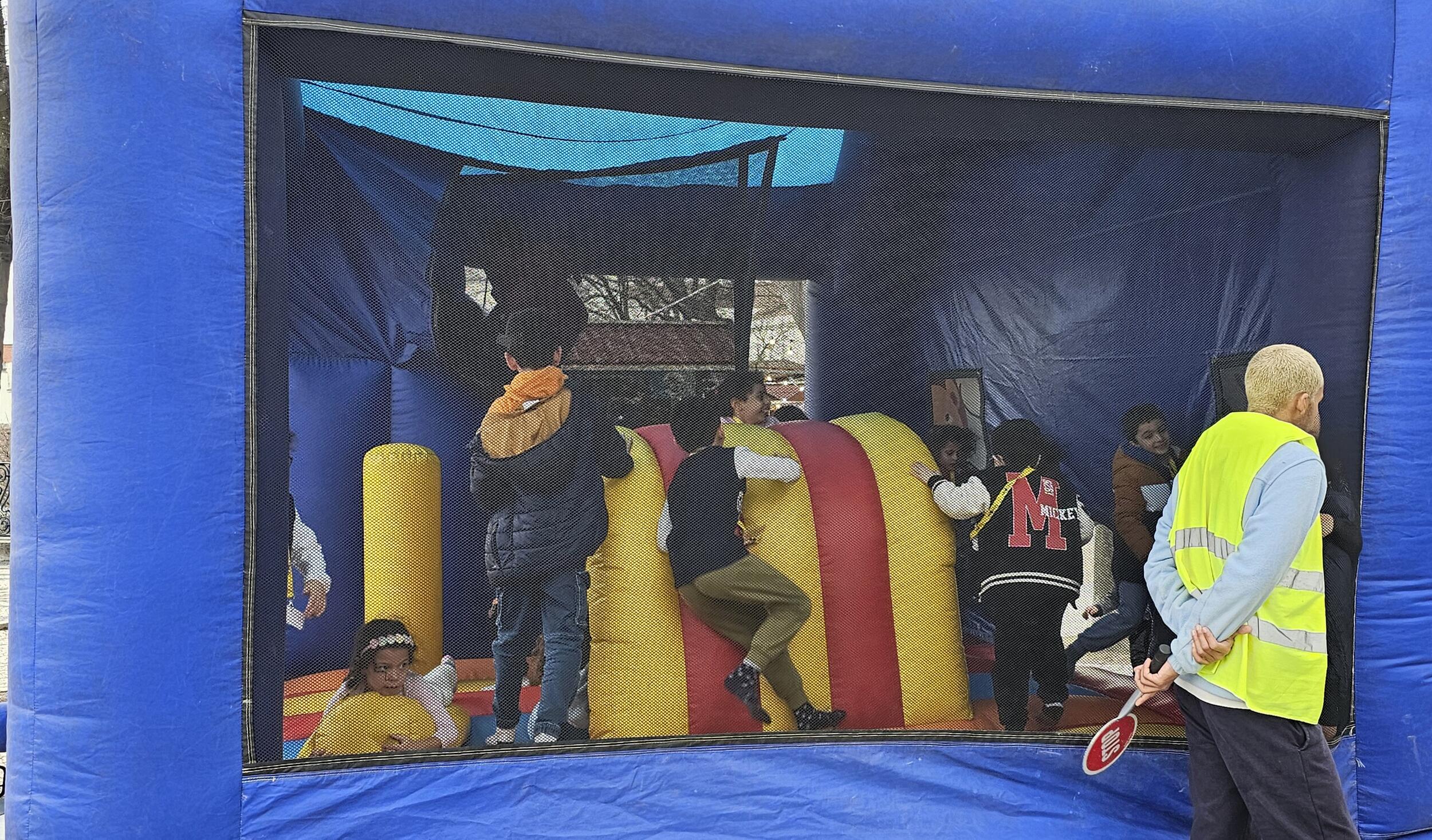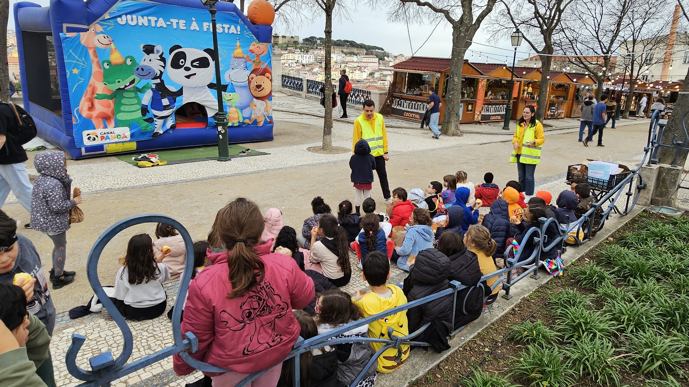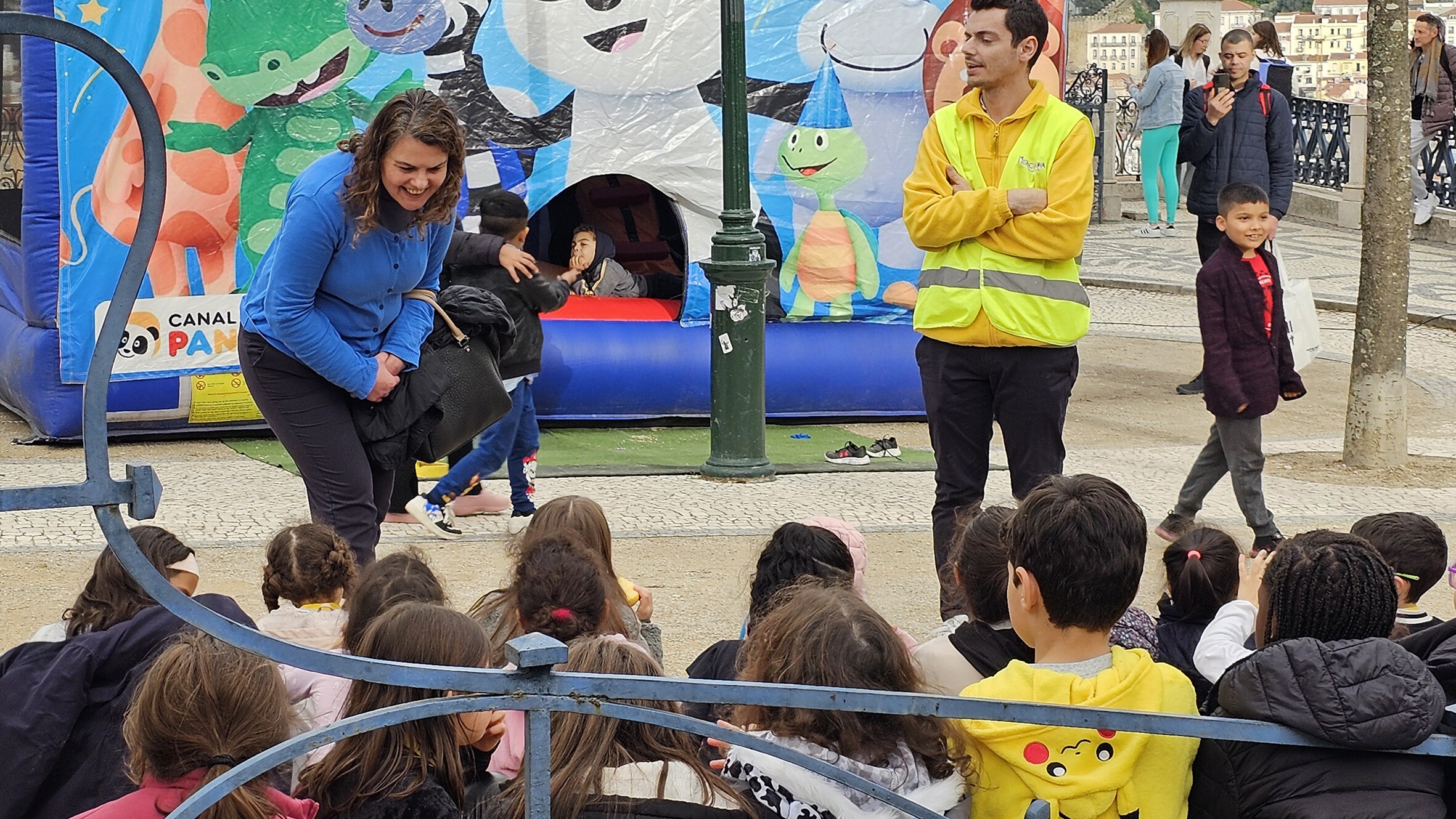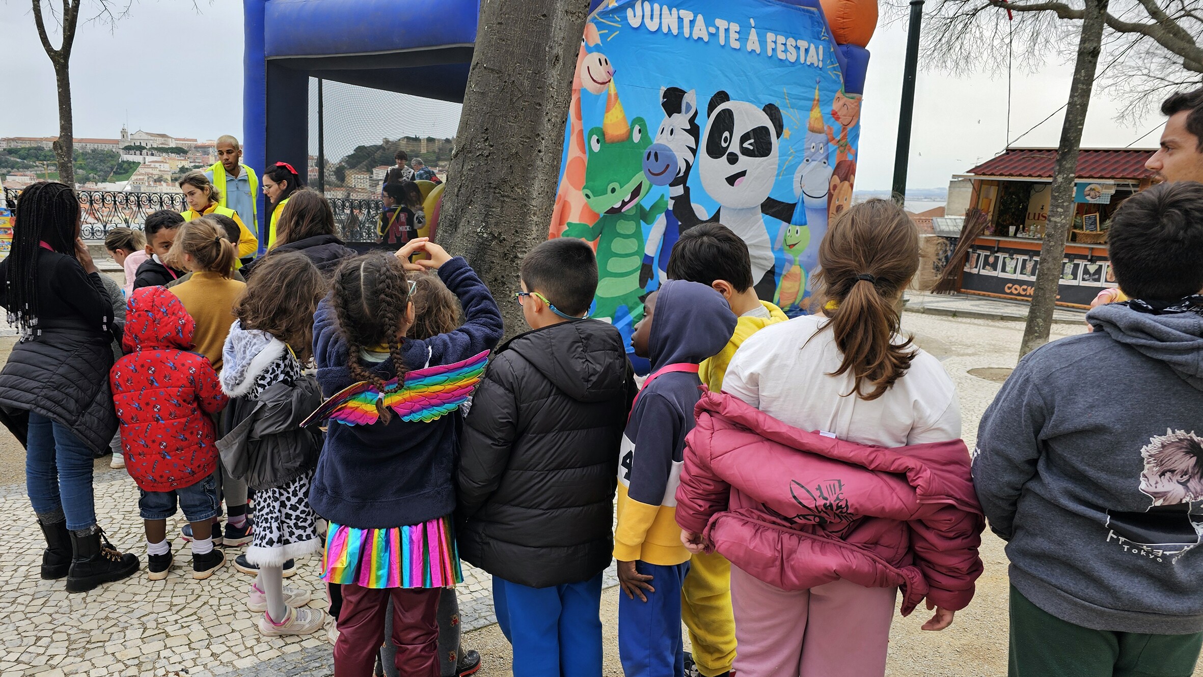 Na tarde desta quarta-feira e ainda sob o ritmo carnavalesco, cerca de meia centena de crianças da escola das Gaivotas e Padre Abel Varzim foram ao Miradouro de São Pedro de Alcântara, onde decorre o ‘Entrudo Trasmontano’, para animar o dia com muitos saltos e outras tantas brincadeiras no insuflável.