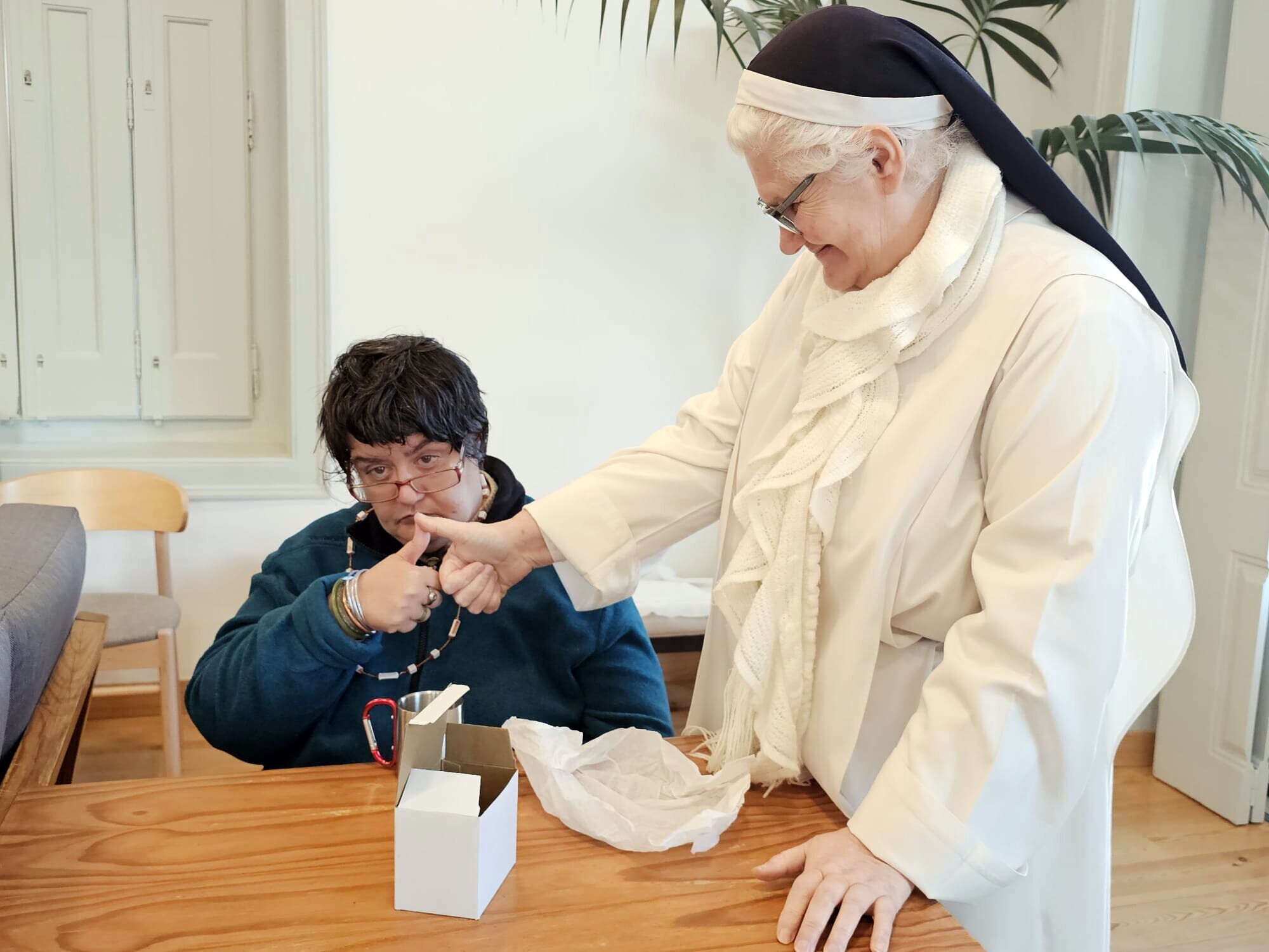 Na tarde deste domingo, por entre manifestações de contentamento, Carla Almeida, presidente da Junta de Freguesia e Ana Marques, Secretária da Assembleia de Freguesia da Misericórdia e uma equipa de técnicos da Junta de Freguesia, foram recebidos pela Irmã Ana Maria e pelas mulheres residentes no Convento.