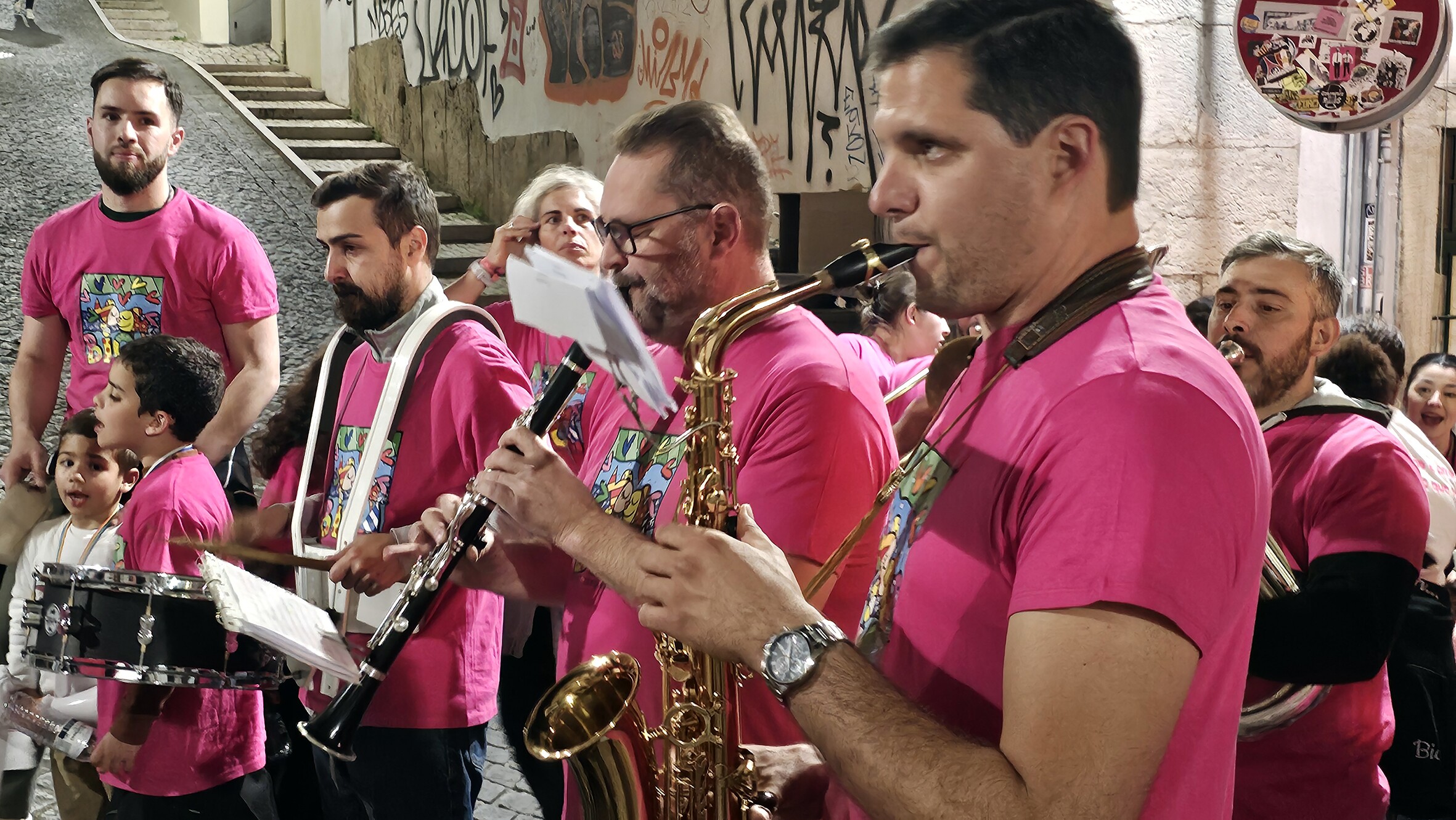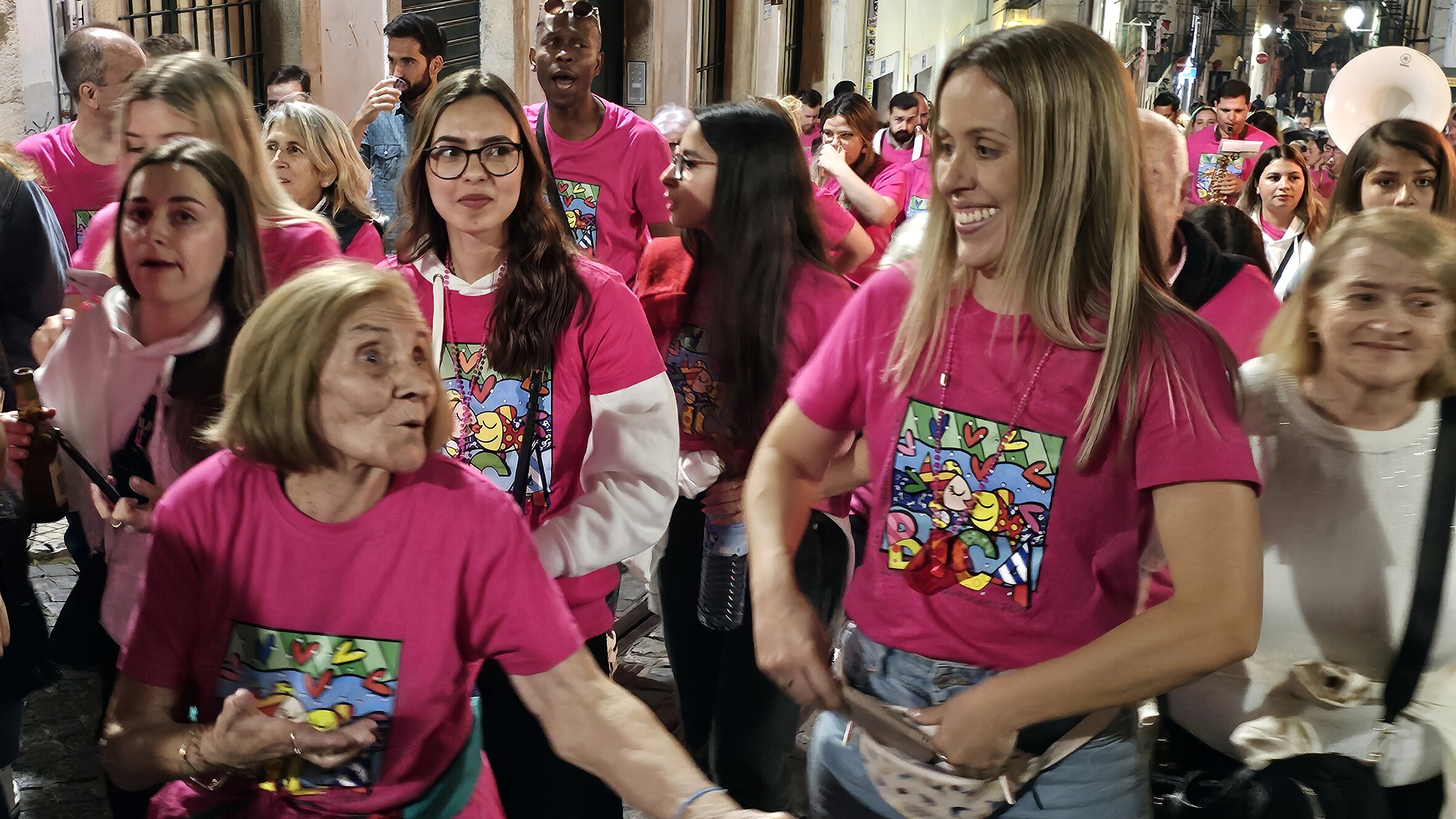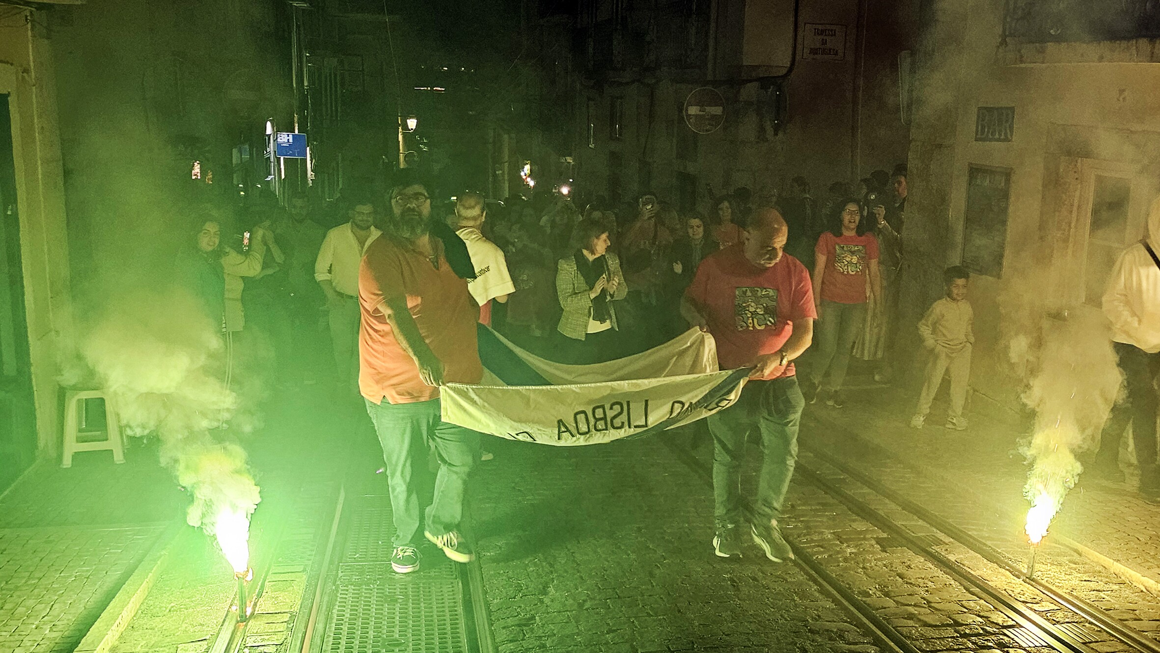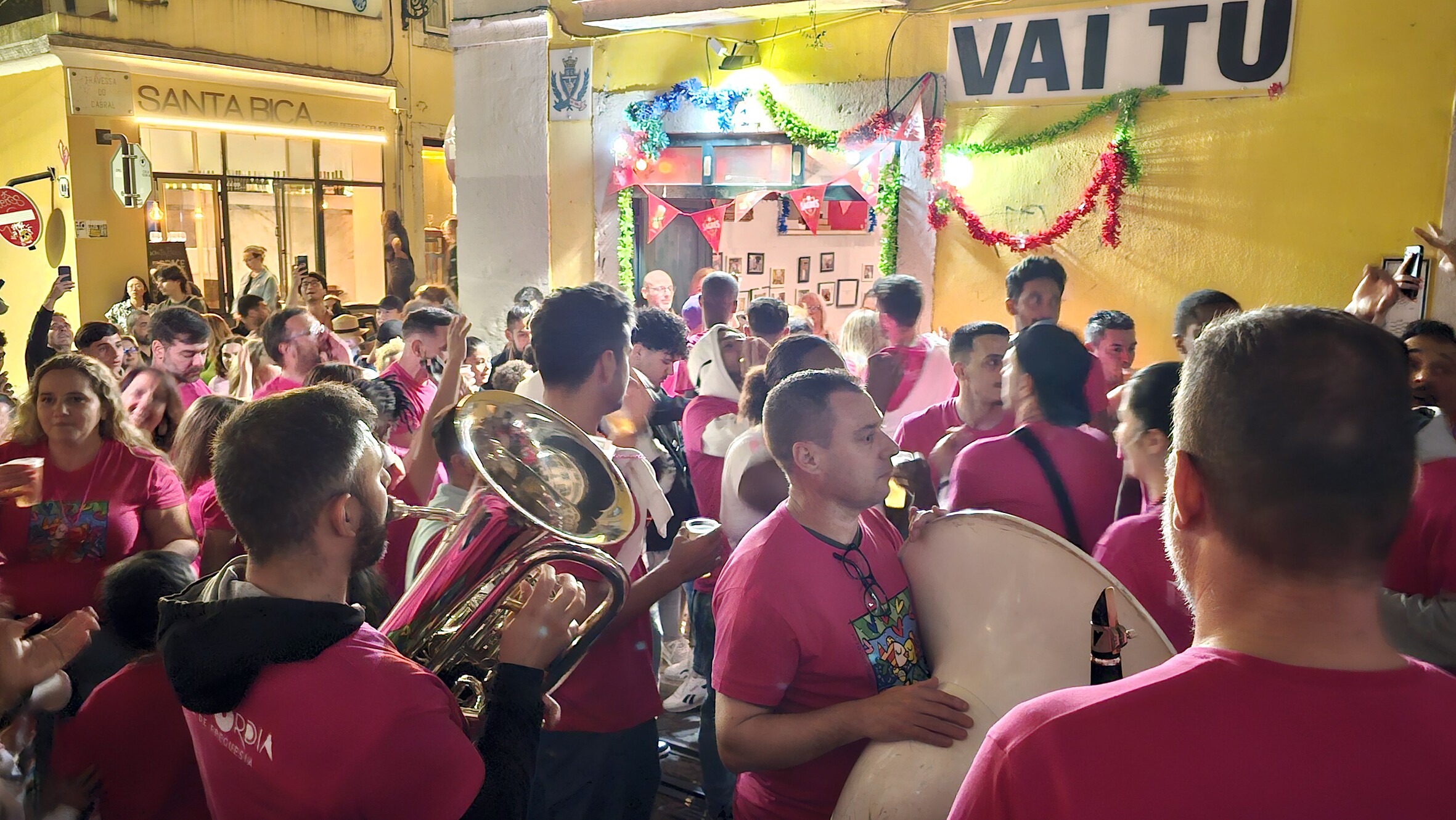 Ao início da noite o ‘pelotão’ de marchantes, moradores e amigos do bairro, encabeçado por Carla Madeira, presidente da Junta de Freguesia da Misericórdia, Carla Almeida, vogal do Executivo da Junta de Freguesia e Pedro Duarte, vogal do Executivo da Junta de Freguesia e coordenador da Marcha da Bica, Américo Silva, ensaiador da Marcha, Bruno Madeira, padrinho da Marcha, elementos da Comissão da Marcha e do Arraial da Bica, da Direção do Marítimo e tantos outros que dão corpo à Marcha, percorreram os ‘cantos à casa’ e espalharam pelo Bairro a alegria de ser da Bica e a paixão e dedicação à sua Marcha.