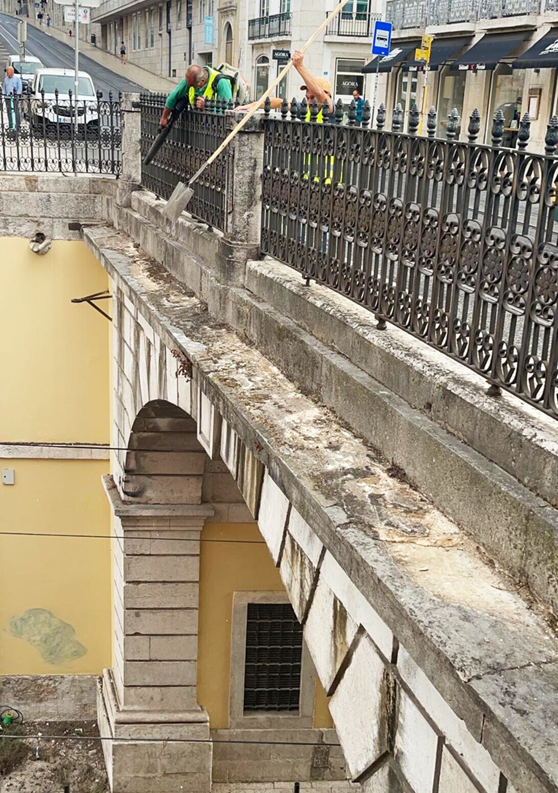 Na manhã deste sábado, as atenções também estiveram centradas nos trabalhos da equipa que procedeu à limpeza dos parapeitos do Arco da Rua de S. Paulo.