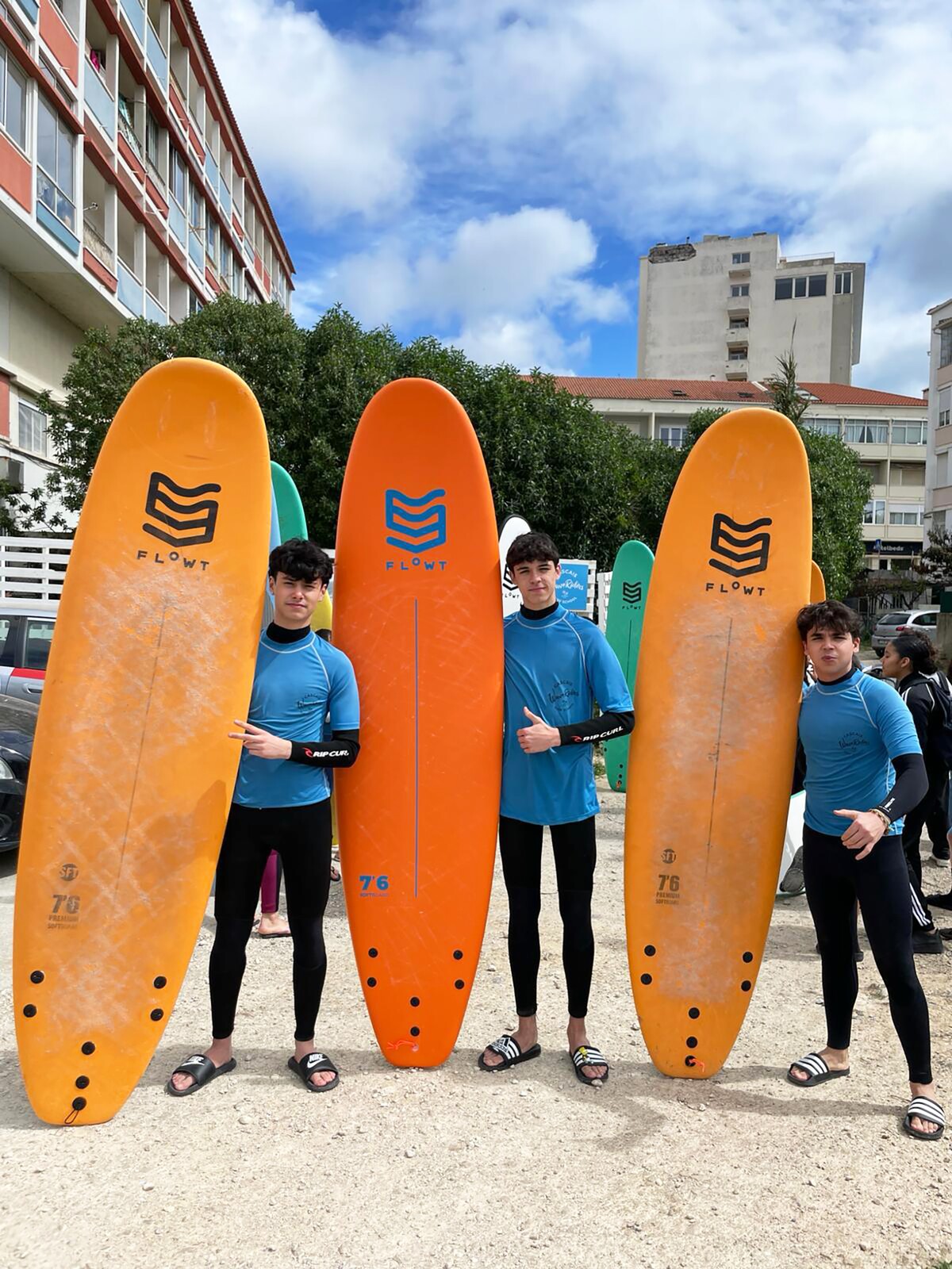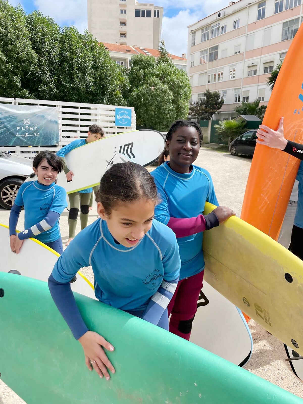 No primeiro dia, os jovens do Projeto Intervir participaram numa aula de Surf e fizeram-se ao mar, nas ondas ainda deslizantes da praia de Carcavelos.