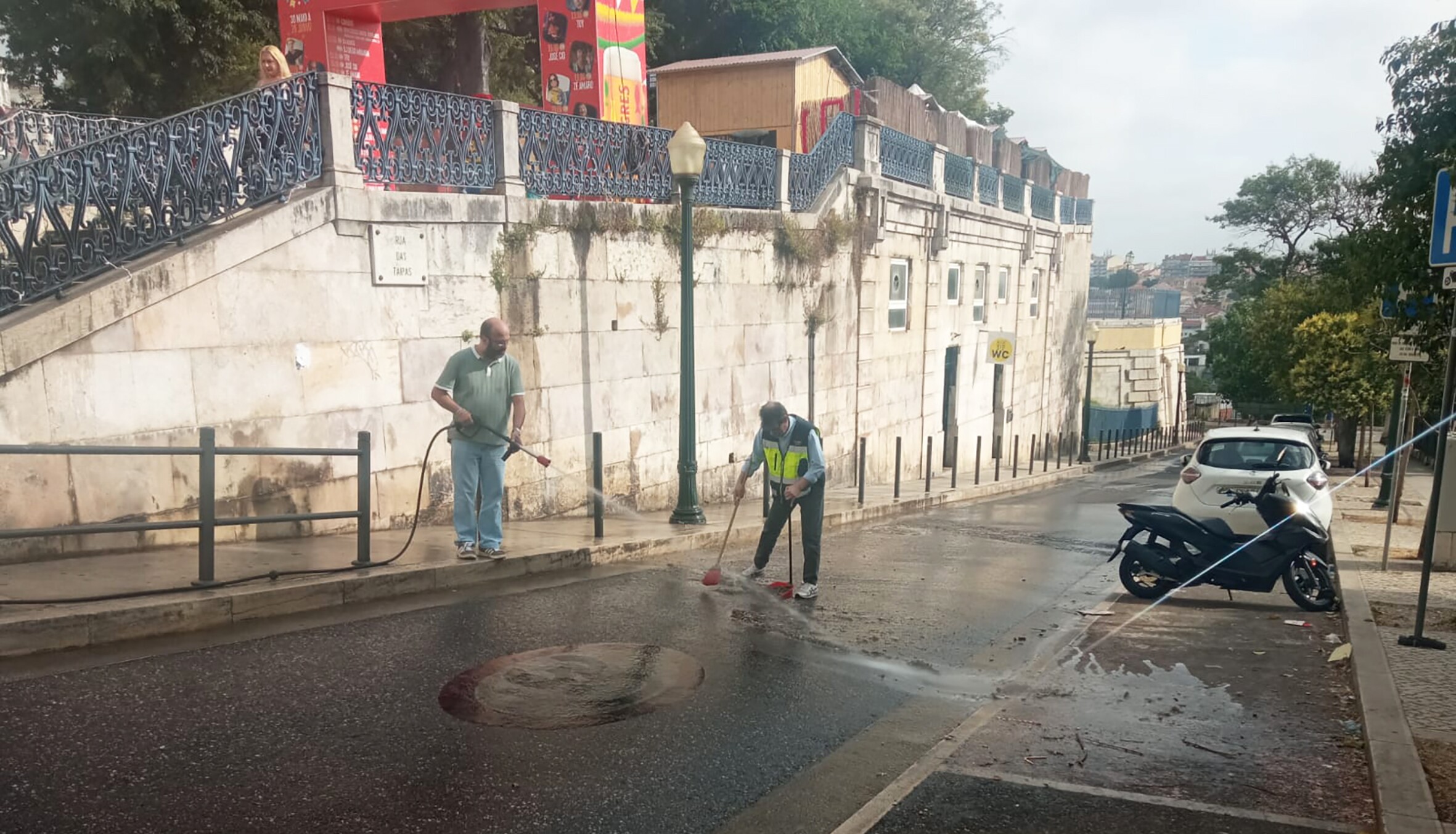 Prosseguem as intervenções diárias das equipas da Higiene Urbana da Junta de Freguesia da Misericórdia. No âmbito das suas competências, esta quarta-feira foi dedicada à limpeza, desinfeção e deservagem de vários arruamentos da Freguesia recorrendo a meios manuais e mecânicos, entre outros, no Miradouro S. Pedro de Alcântara e junto ao Jardim Roque Gameiro, Miradouro de Santa Catarina, Largo e Escadinhas de São João Nepomuceno.