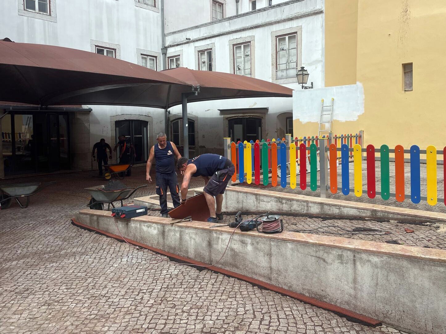 Na tarde de sexta-feira, Carla Almeida, presidente da Junta de Freguesia da Misericórdia, acompanhou os trabalhos de requalificação do espaço, que visam proporcionar melhores condições de utilização por parte das crianças.