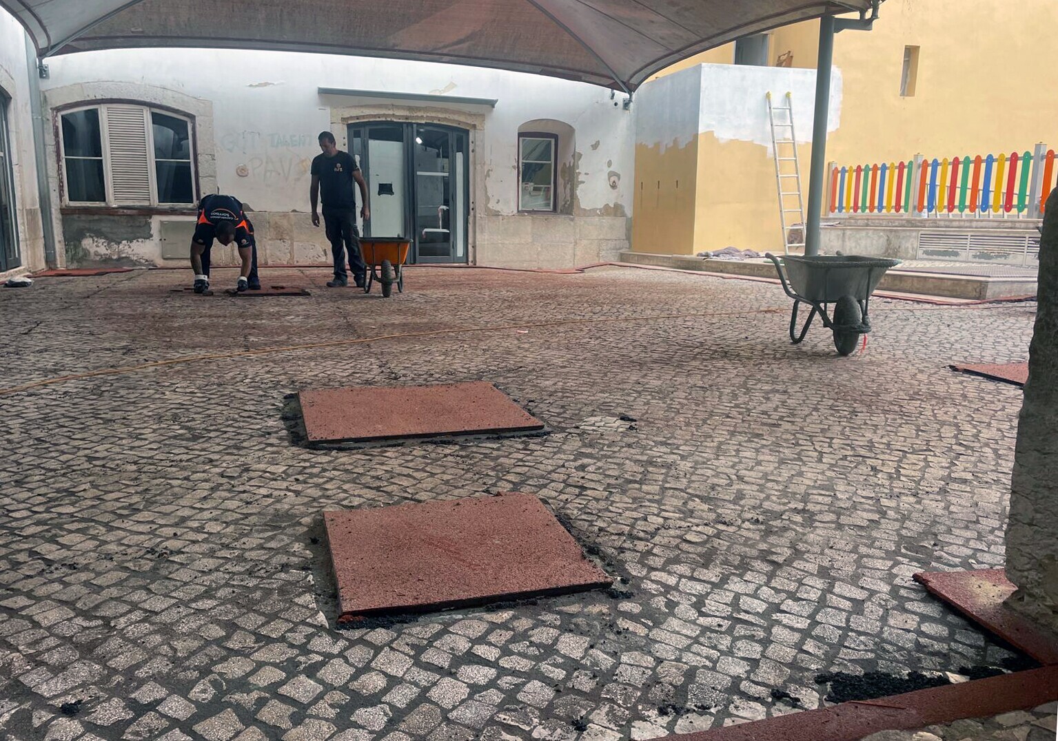 A Junta de Freguesia da Misericórdia concluiu hoje a substituição do piso da zona de recreio da Escola Padre Abel Varzim.