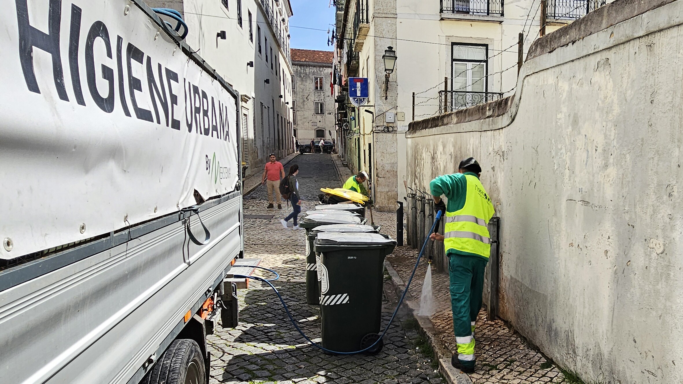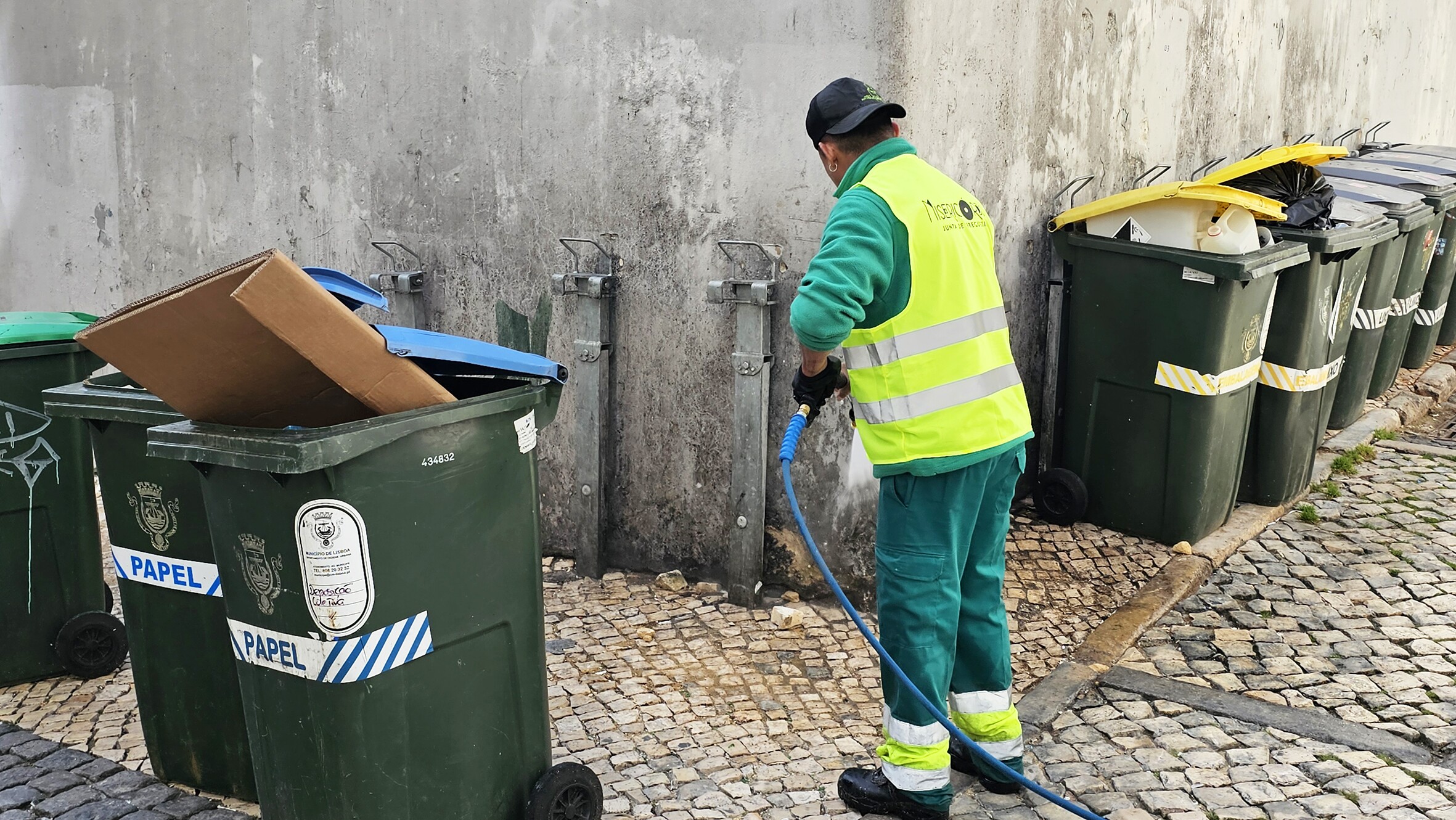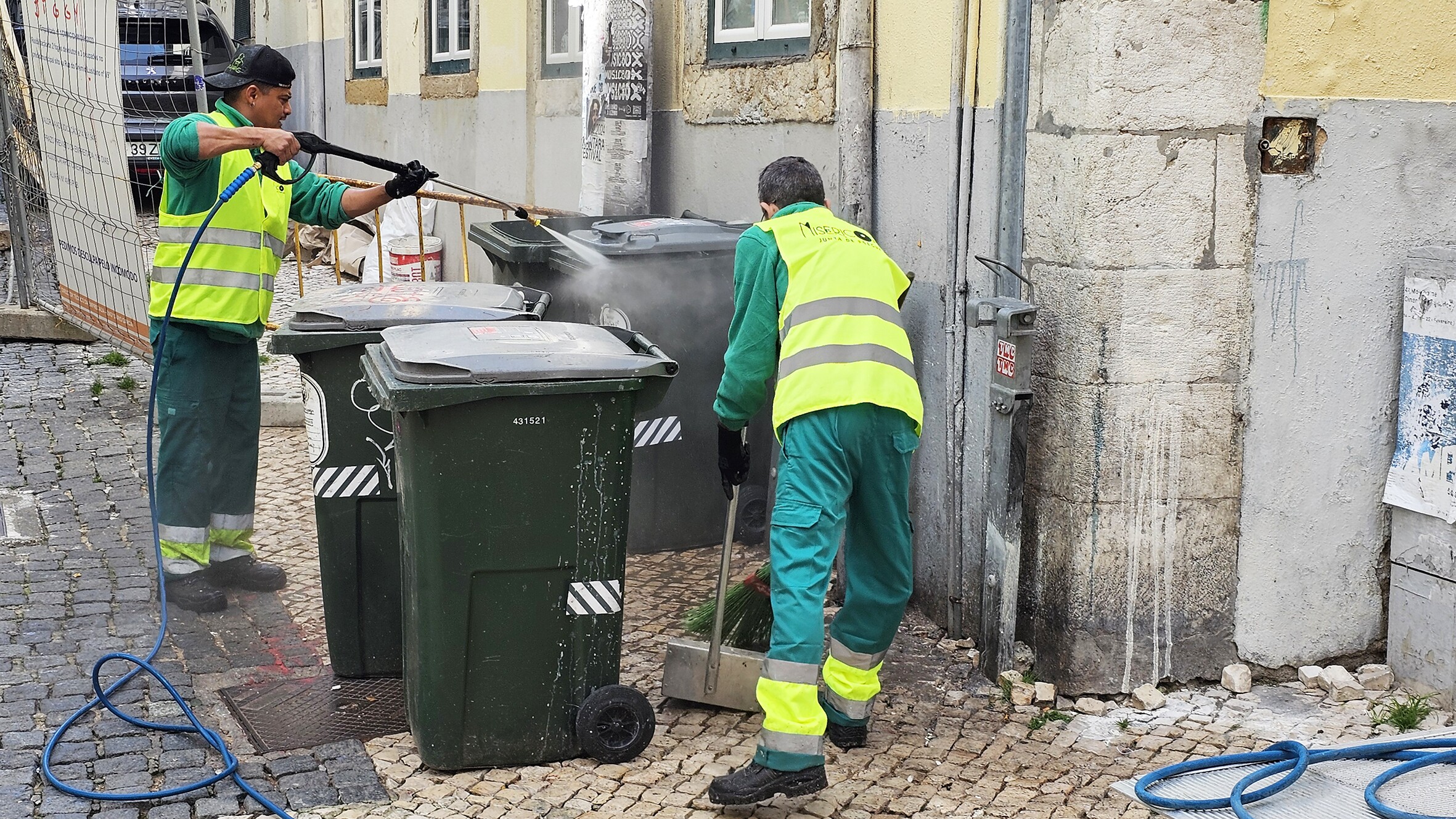 Prosseguem as intervenções diárias das equipas da Higiene Urbana da Junta de Freguesia da Misericórdia. No âmbito das suas competências e em muitas circunstâncias superando-as, o dia também foi dedicado à lavagem dos contentores de lixo e dos espaços circundantes em vários arruamentos da Freguesia.