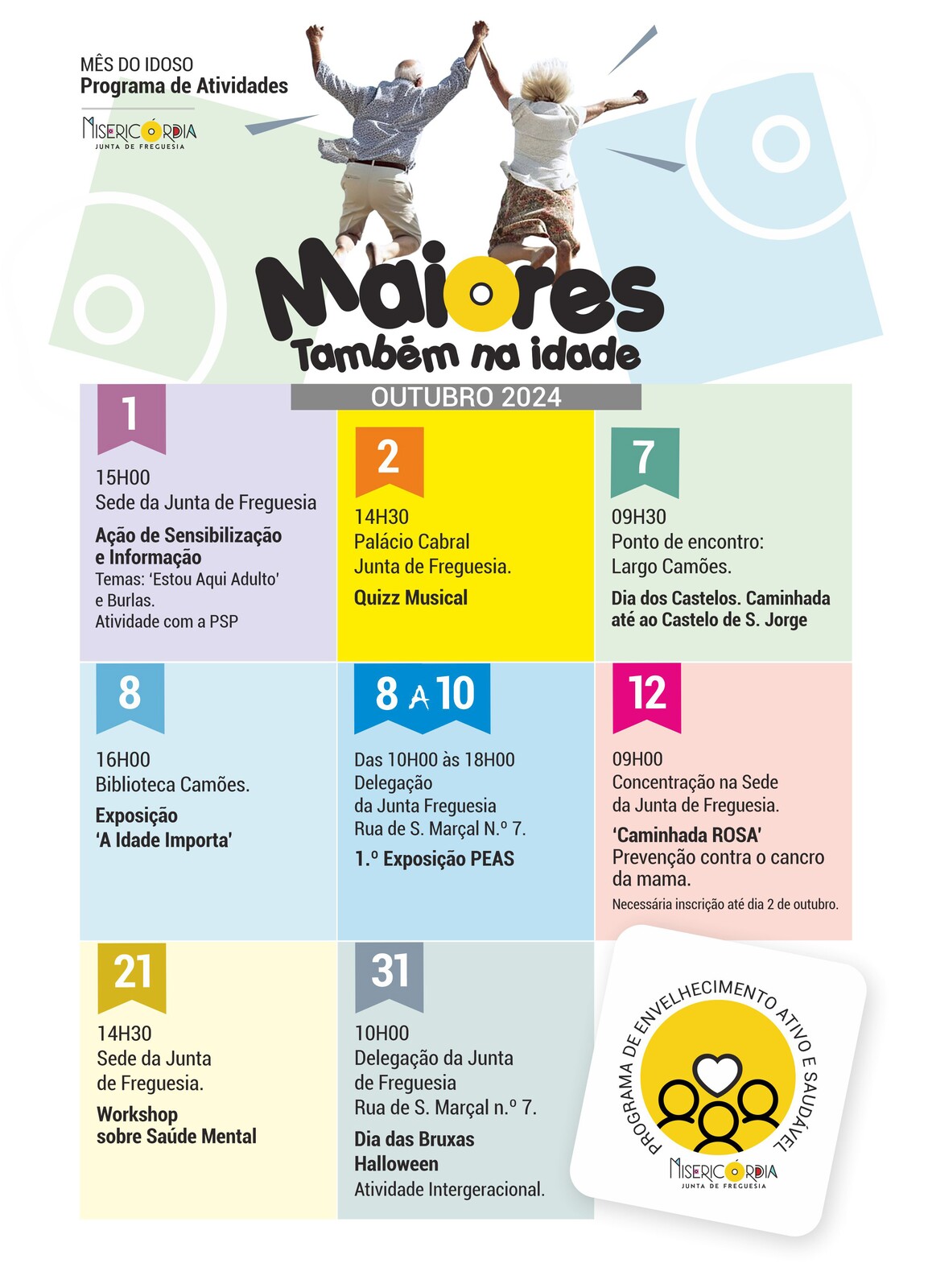 Estas iniciativas promovidas pela Junta de Freguesia da Misericórdia, inseridas no Programa de Envelhecimento Ativo e Saudável, registam anualmente centenas de participações e procuram ser um importante contributo na valorização da qualidade de vida dos que vivem na Misericórdia, particularmente daqueles que são os nossos Maiores, também na idade.