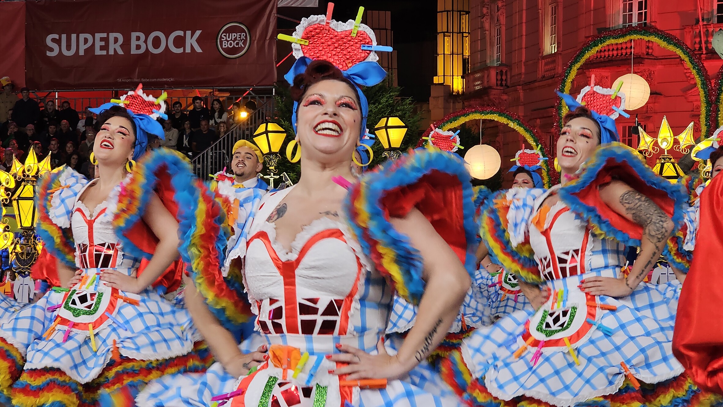 Como foi bonito ver tanta dedicação misturada com sorrisos e vontade de mostrar a perfeição vestida a preceito. Mereceram todos os vigorosos aplausos e vivas às nossas marchas, vindos das laterais da avenida e da tribuna, onde foram saudadas por Carla Madeira, presidente da Junta de Freguesia e Carla Almeida, vogal do Executivo, por entre o presidente do município, a presidente da Assembleia Municipal, os organizadores e convidados do concurso.
