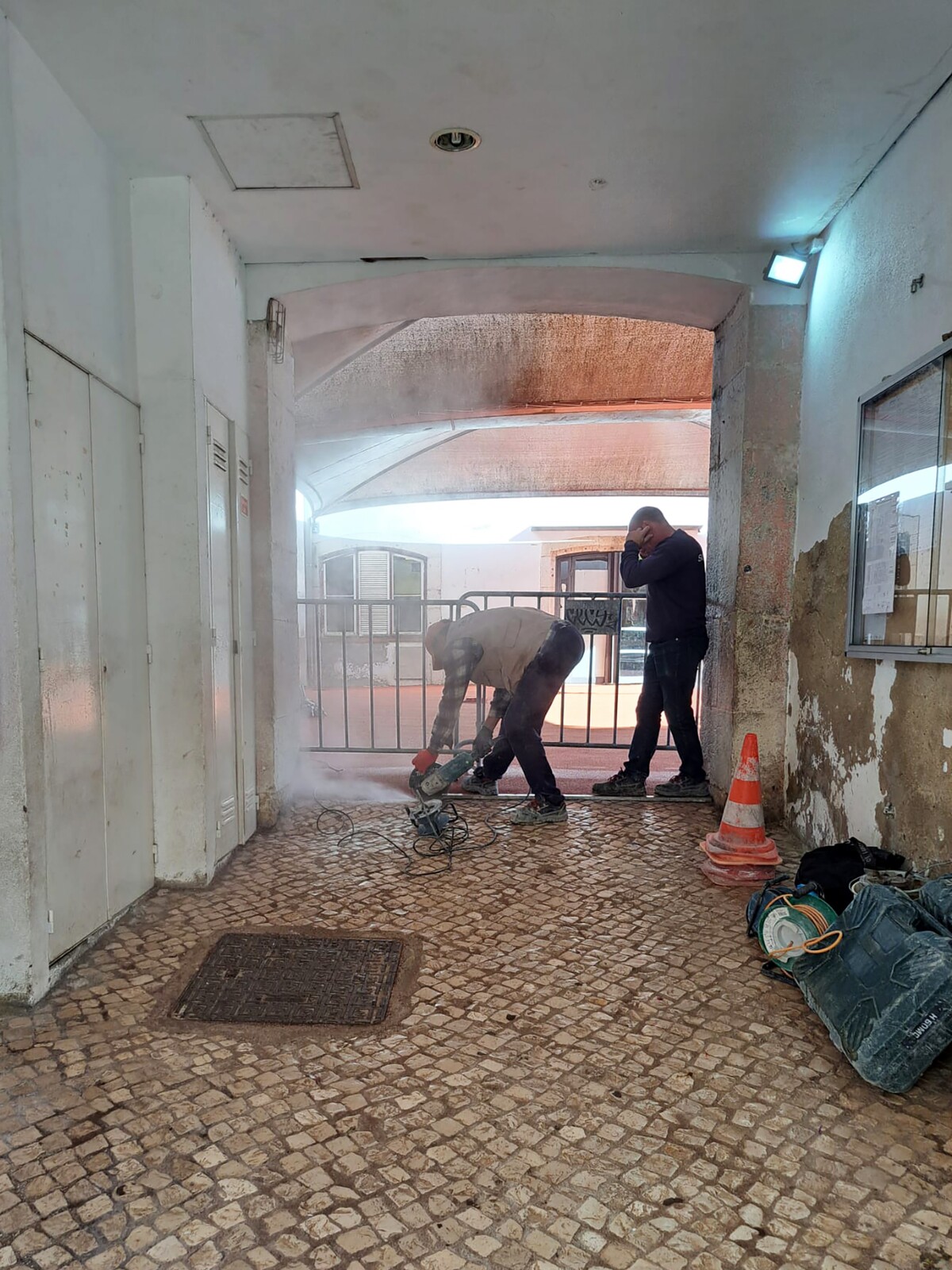 Nesta intervenção e aproveitando a paragem letiva para as férias da Páscoa, foram iniciados os trabalhos de requalificação do espaço interior de acessos à Escola Padre Abel Varzim, onde o piso será nivelado e substituído por calçada antiderrapante.
