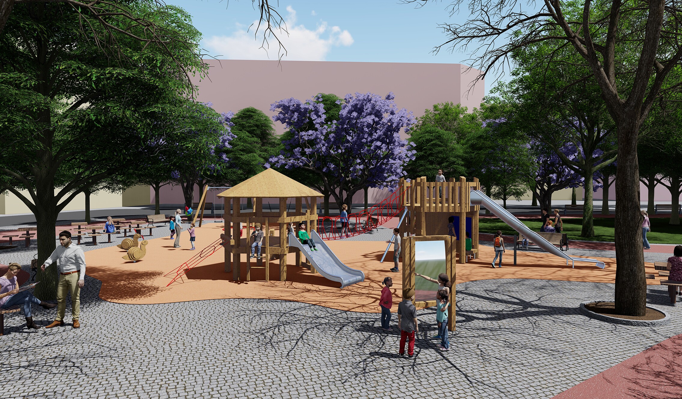 Esta obra, que substitui o anterior parque infantil muitas vezes vandalizado, foi pensada com os seus utilizadores, num trabalho participativo que envolveu crianças, famílias e técnicos de educação.