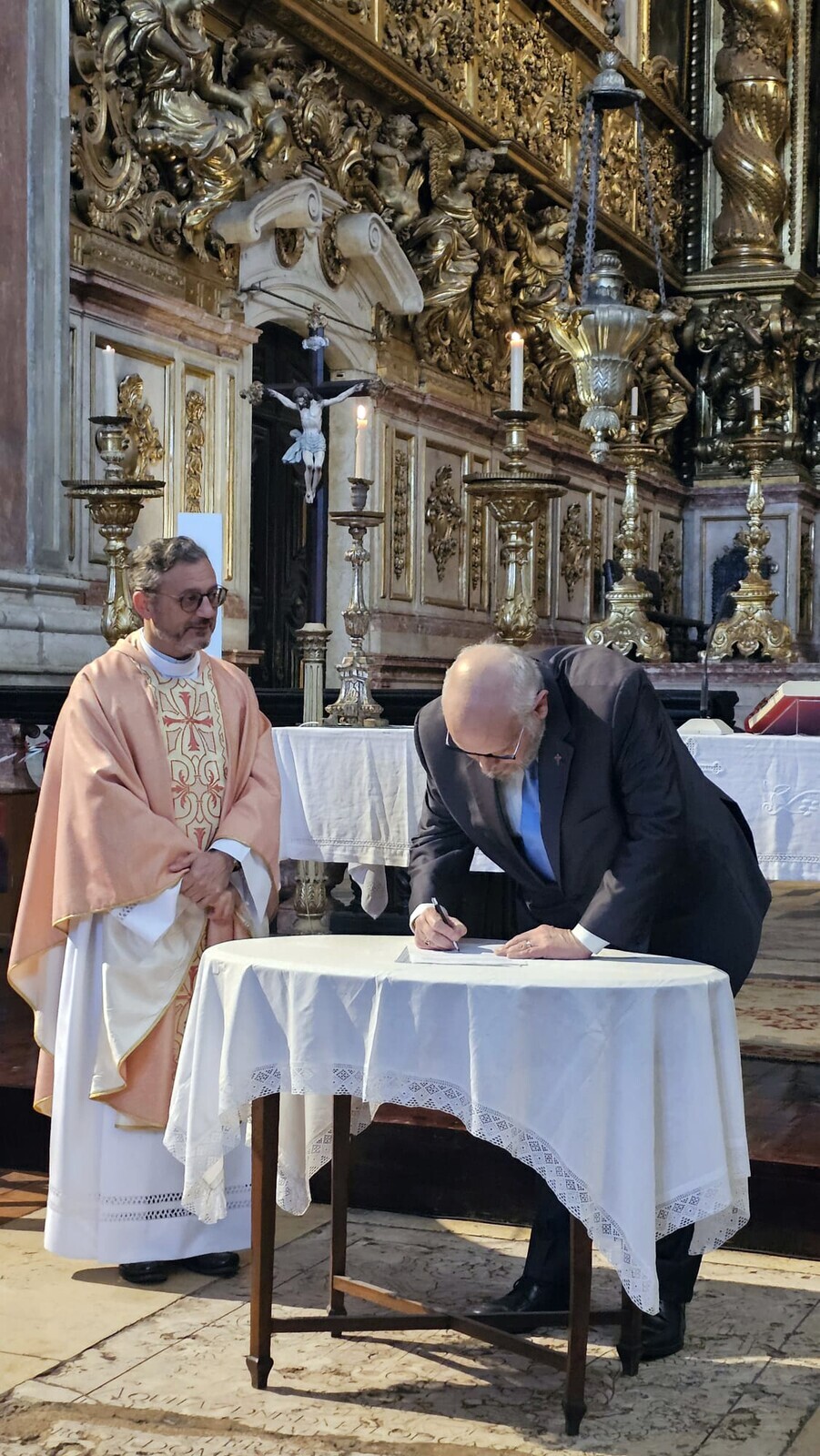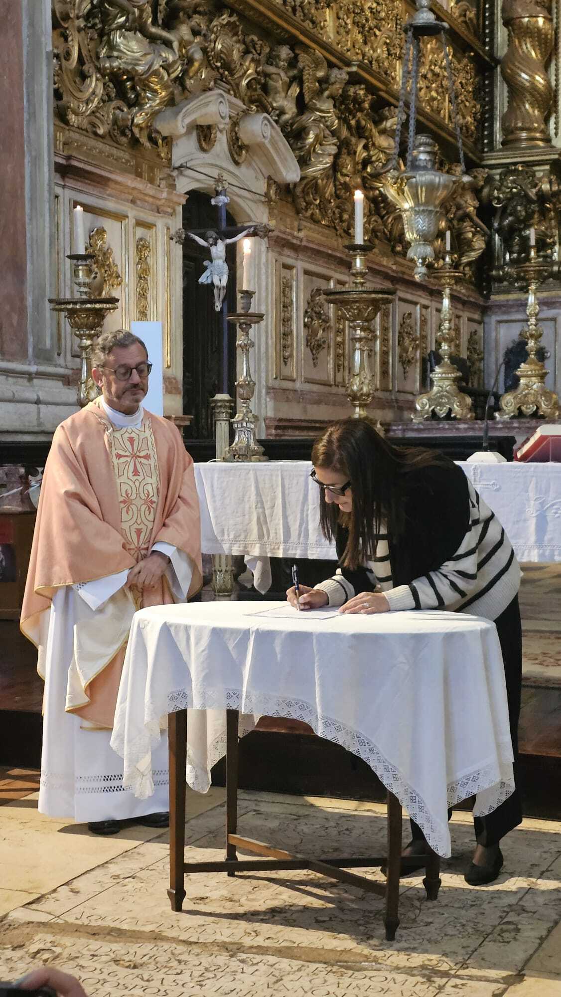 A cerimónia decorreu no período da habitual Missa realizada na Igreja de Santa Catarina e contou com a presença de fiéis e amigos do Centro Social, entre eles a presidente da Junta de Freguesia da Misericórdia, Carla Almeida e a técnica responsável pelo Programa de Envelhecimento Ativo e Saudável da Junta de Freguesia, Mariana Oliveira.