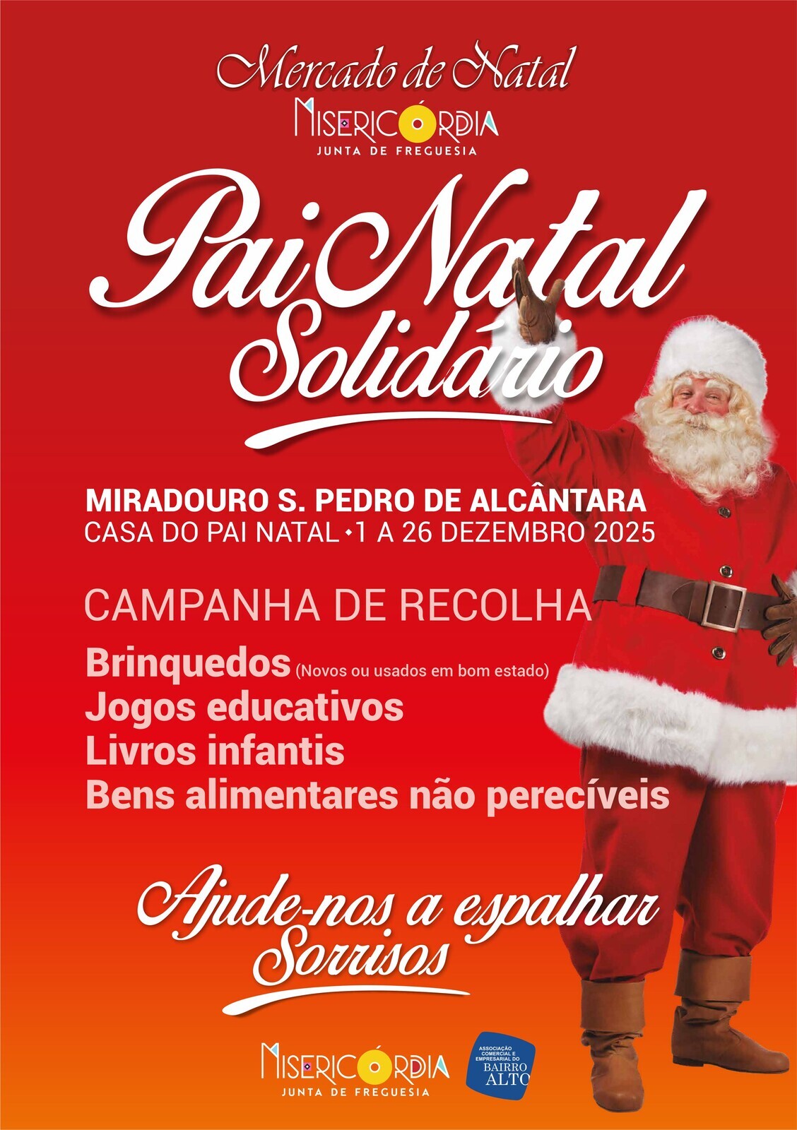 Entre os dias 1 e 26 de dezembro, as doações podem ser entregues na ‘Casa do Pai Natal’ no Mercado de Natal da Misericórdia, no Miradouro de S. Pedro de Alcântara.