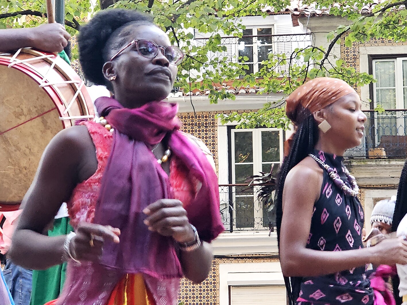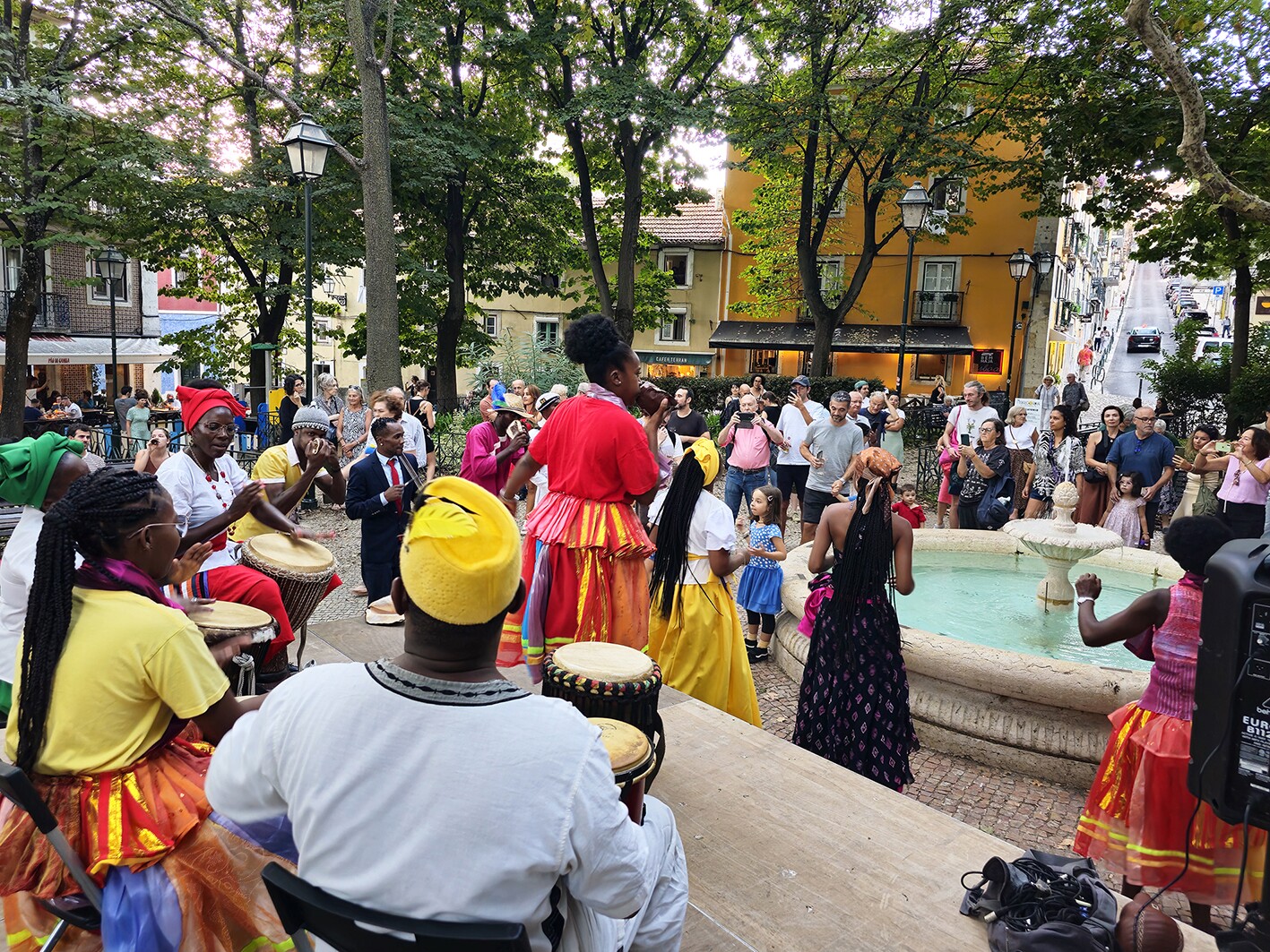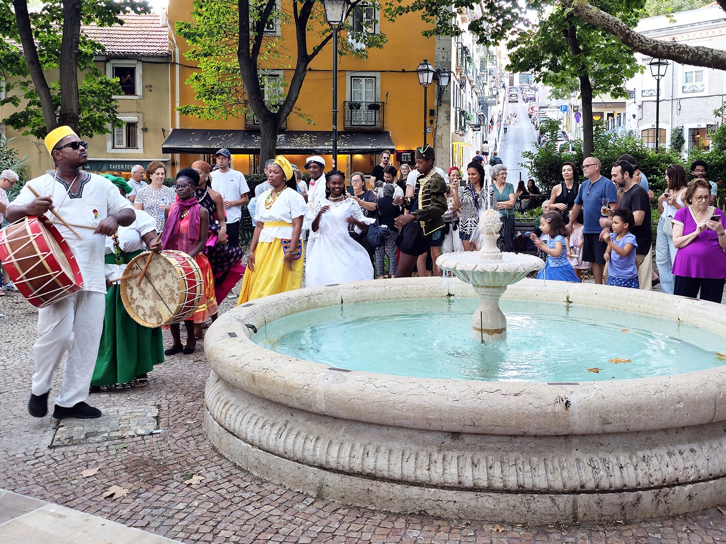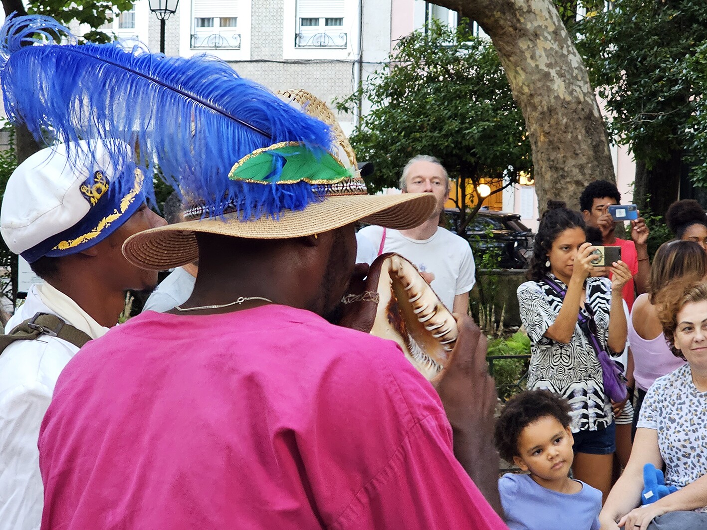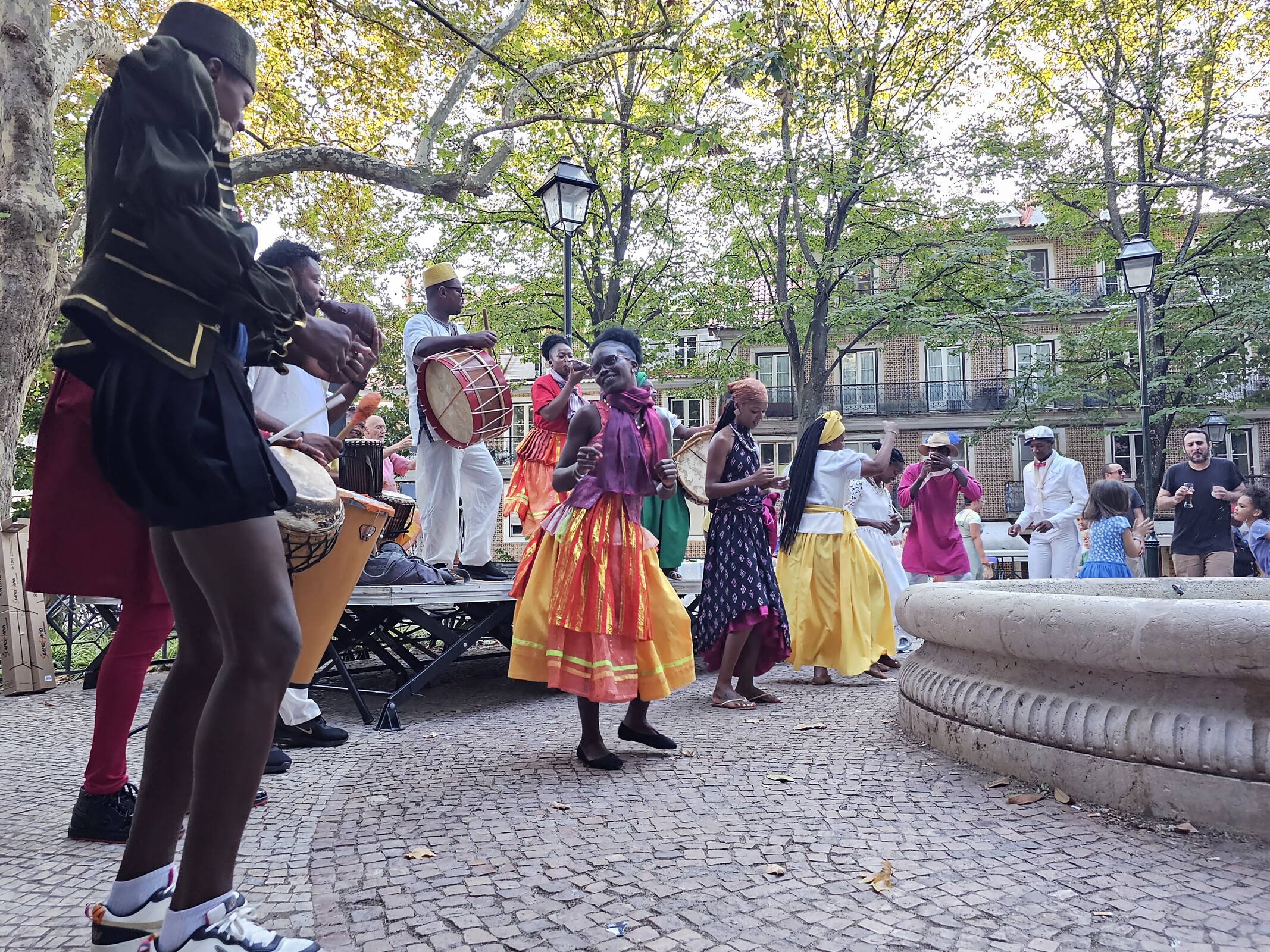 O som dos tambores encheu a Praça e o ritmo pulsante convidou moradores e transeuntes a ‘bater o pé’. Foi assim, no final da tarde desta quinta-feira e neste evento promovido pela Junta de Freguesia da Misericórdia, onde a poderosa componente percussiva, combinada com o som dos búzios embalou músicos e bailarinos que, vestidos a rigor, ofereceram-nos também uma contagiante coreografia de dimensão teatral.