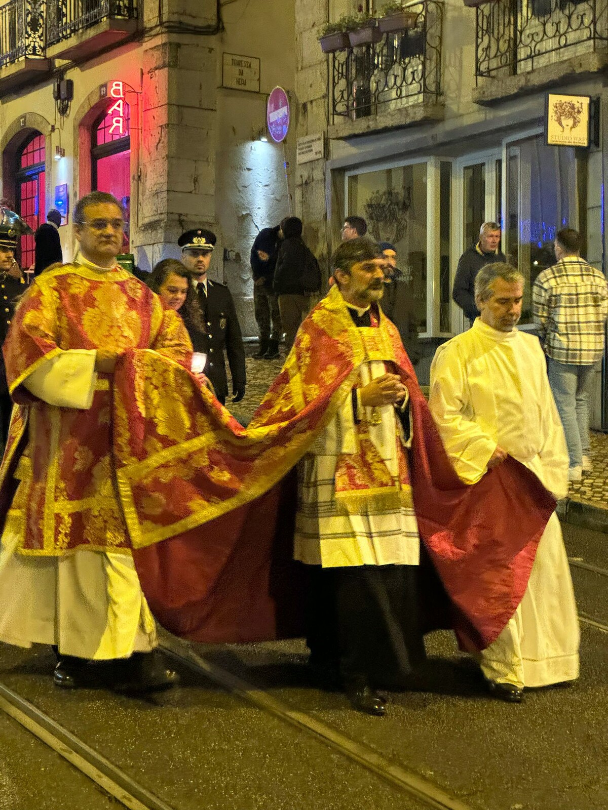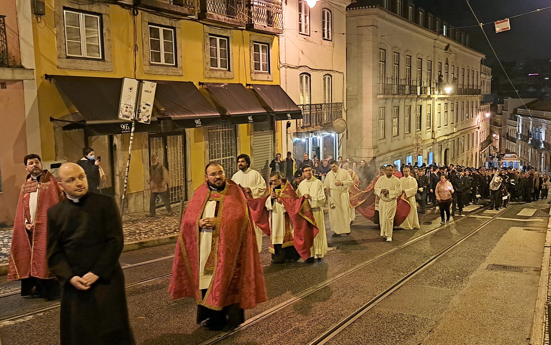 Presidida pelo Padre Ricardo Jacinto o cortejo religioso juntou os sacerdotes Jorge Anselmo, Tiago Melo, Luís Leal, Carlos Pinto e o diácono Nuno Andrade, da Basílica da Estrela.