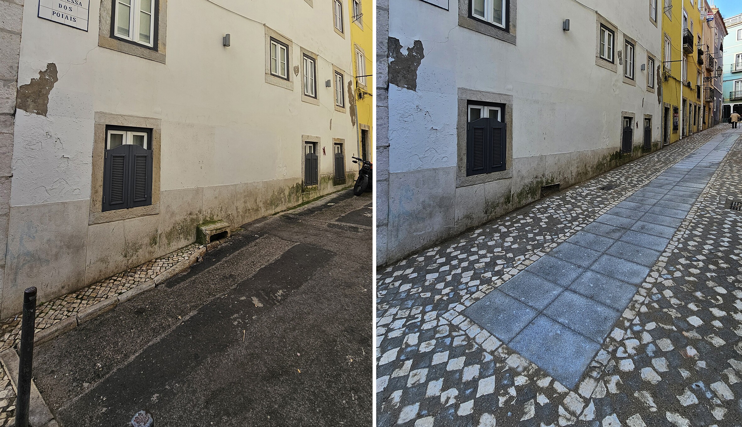 Estas intervenções, iniciadas no início do passado mês de dezembro, a que se juntará a requalificação da Travessa Poço dos Negros, estão inseridas na melhoria da mobilidade pedonal destes três eixos, com a construção de um corredor central composto por lajetas de granito antiderrapante, alinhado nas laterais, junto aos acessos aos edifícios por percursos em calçada antiderrapante.