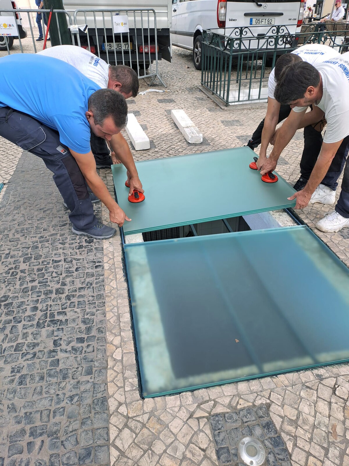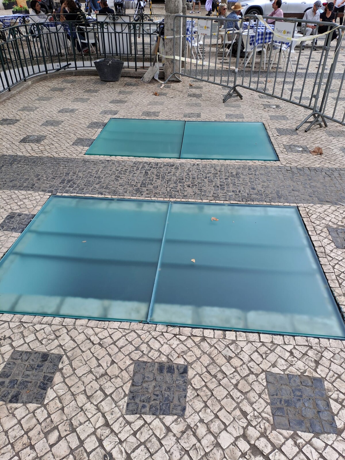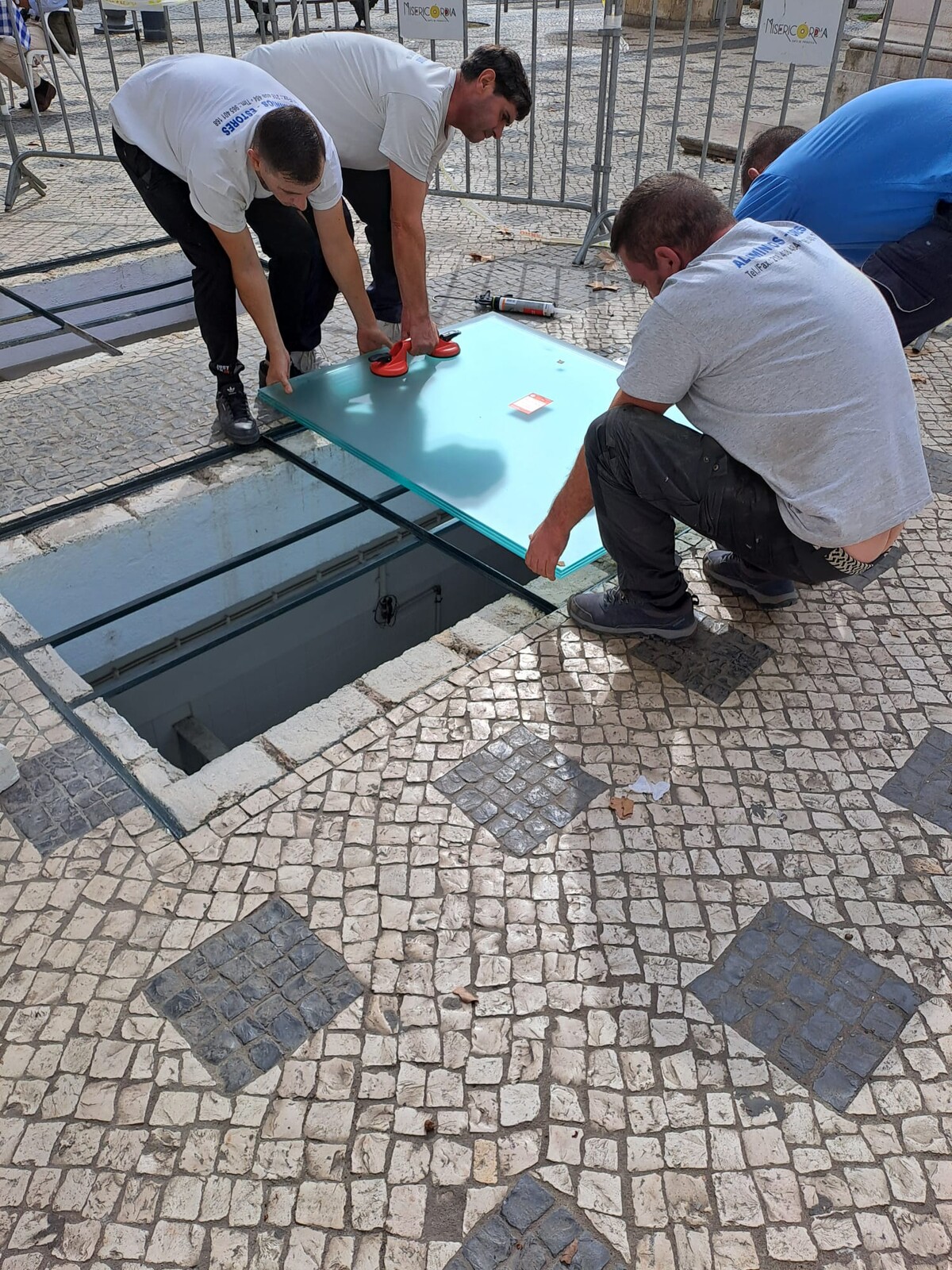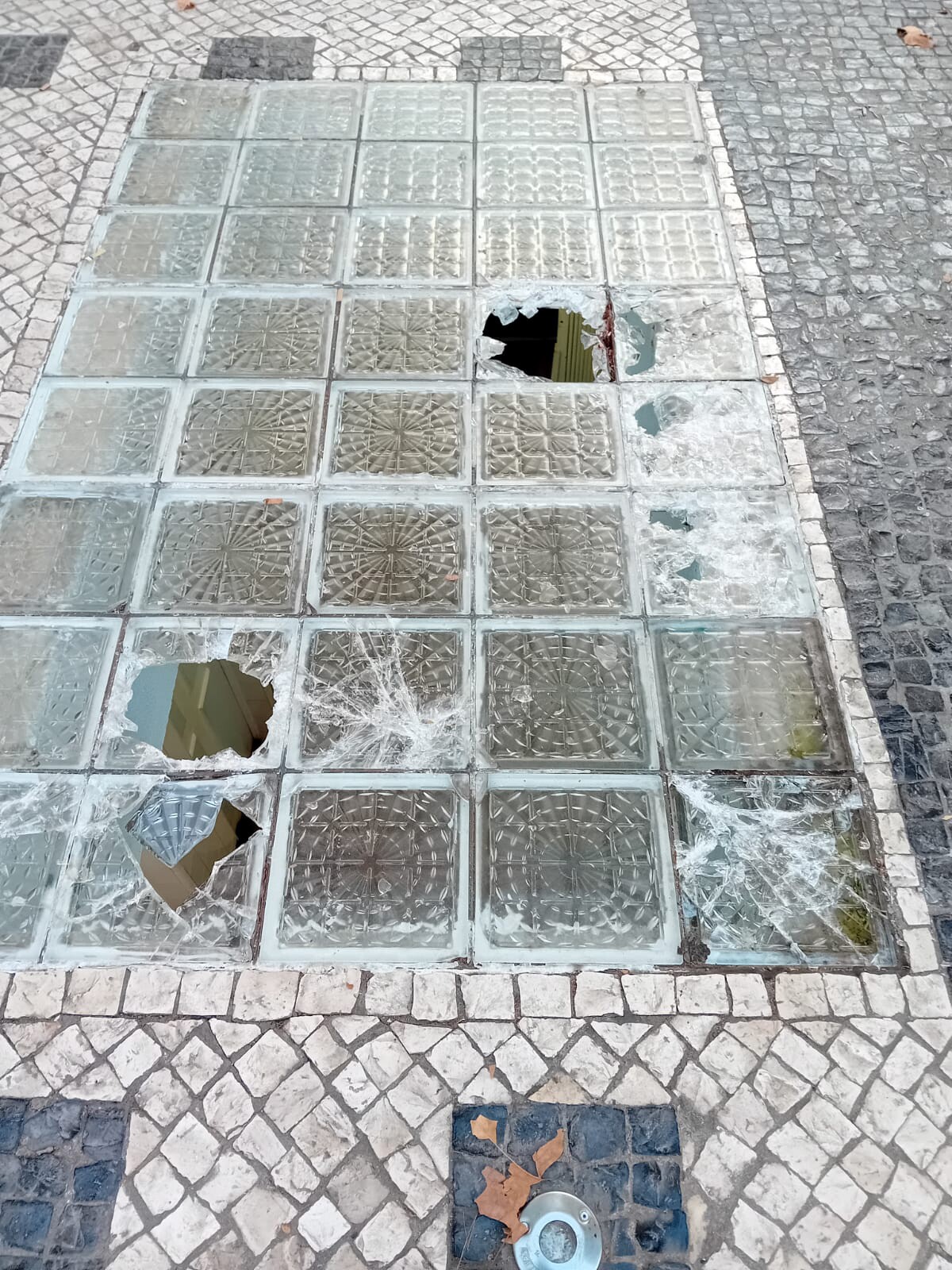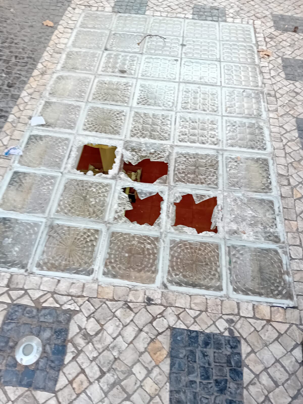 No Largo Trindade Coelho, o piso de vidro que permite a entrada de luz solar para os sanitários públicos, foi vandalizado na madrugada da última quarta-feira, depois de mais uma noite de desenfreada folia na nossa freguesia.