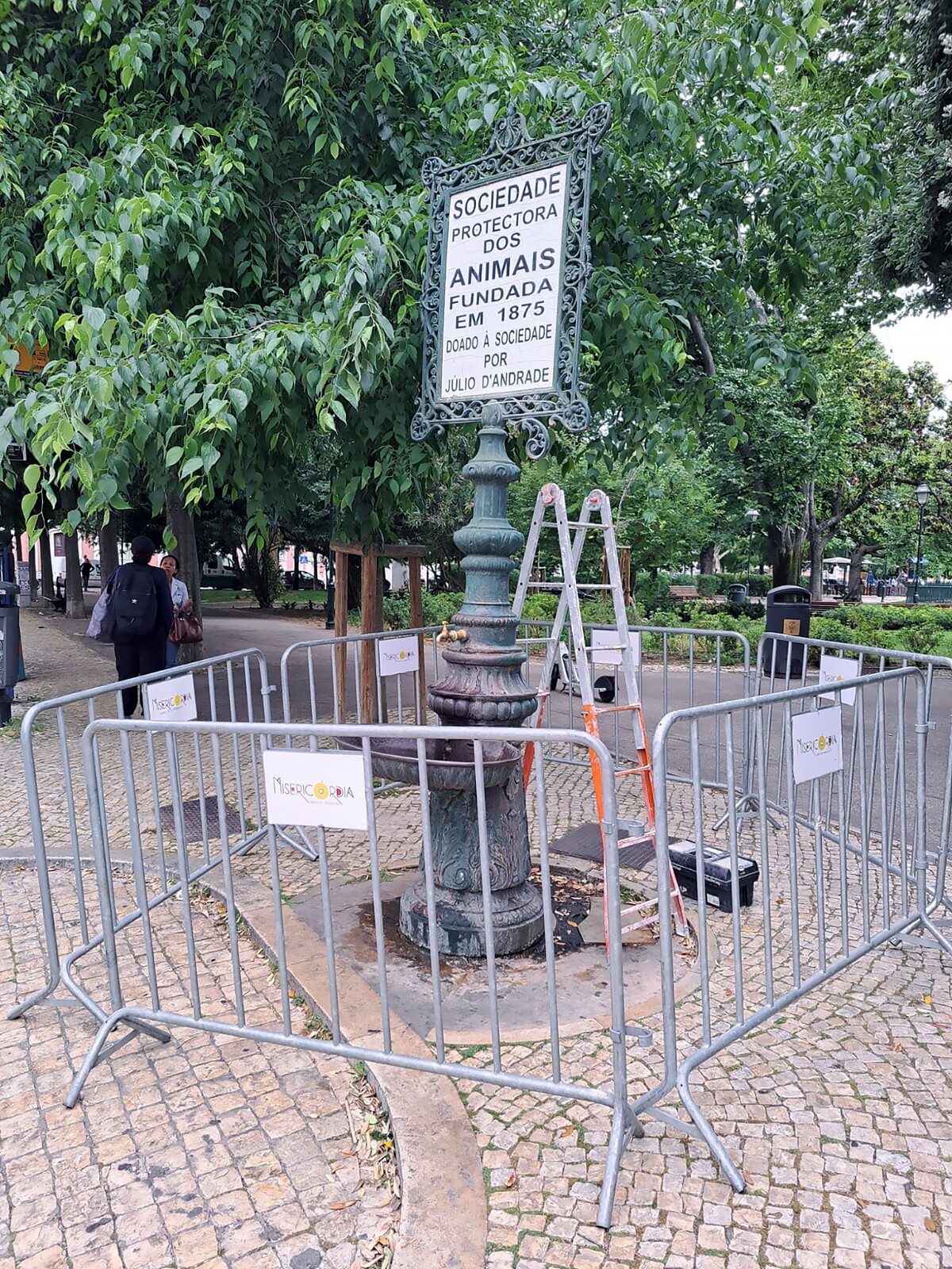 A Junta de Freguesia da Misericórdia iniciou os trabalhos de restauro e conservação do fontanário/bebedouro da Sociedade Protetora dos Animais, situado no Jardim França Borges/Jardim do Príncipe Real.