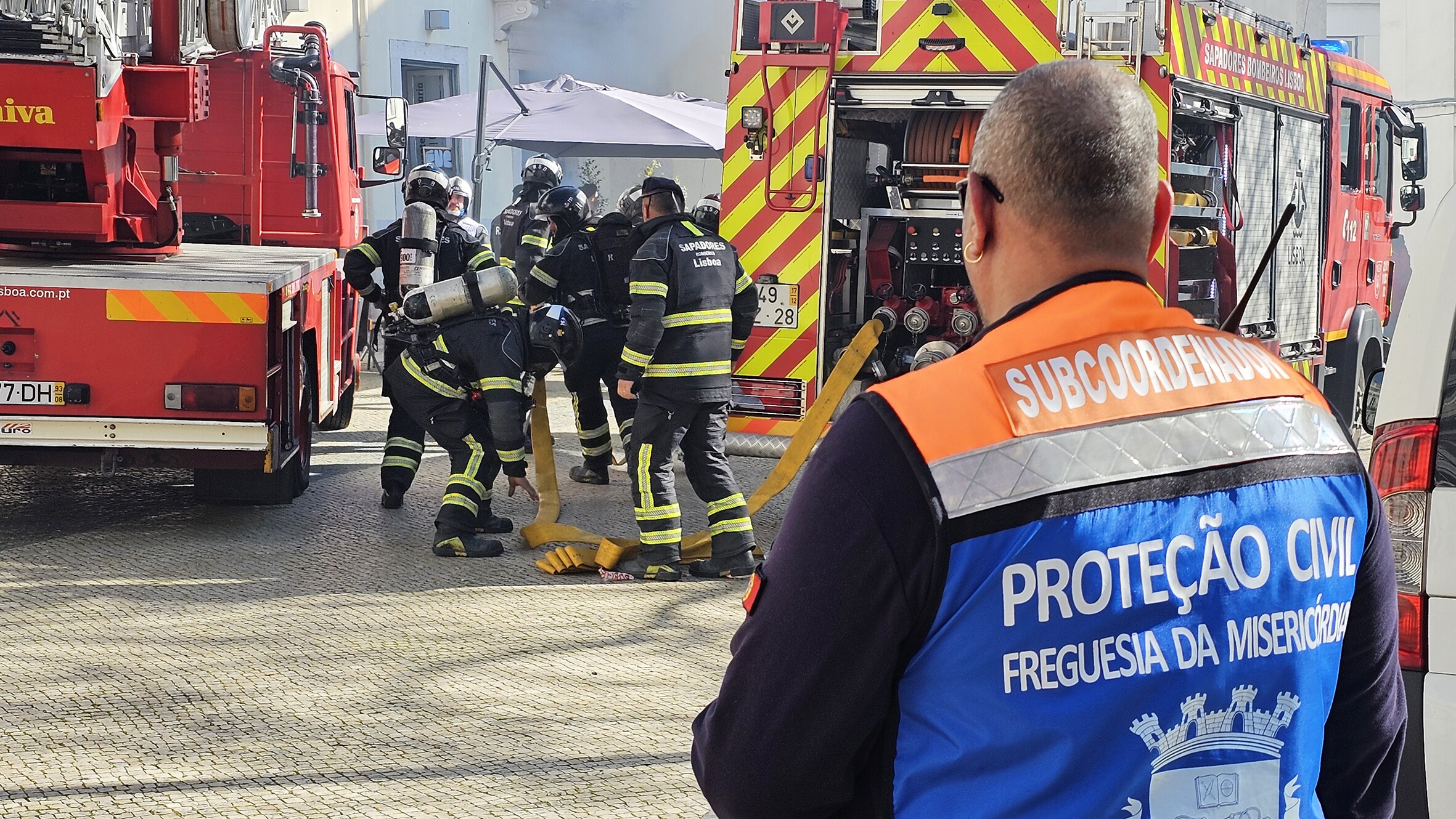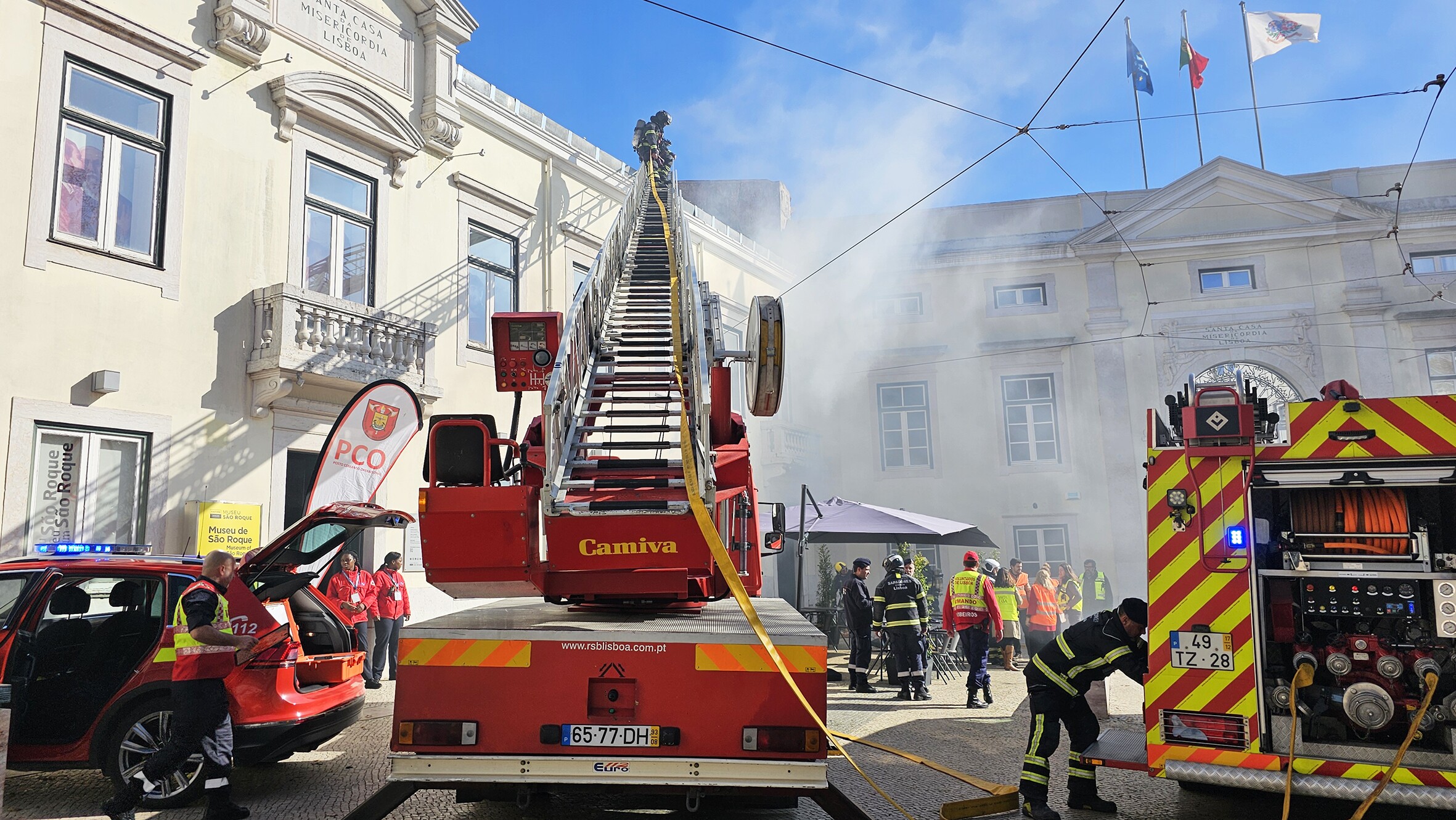 Confirmada a gravidade e dimensão da situação, foram desencadeados os procedimentos de segurança e foram chamados ao local, efetivos do Regimento de Sapadores Bombeiros de Lisboa, os Bombeiros Voluntários de Lisboa, o Serviço Municipal de Proteção Civil de Lisboa, a Unidade Local de Proteção Civil da Junta de Freguesia da Misericórdia, e a Polícia de Segurança Pública que, de acordo com os procedimentos estabelecidos, prestaram assistência a uma ‘vítima’ e evacuaram com sucesso os funcionários e visitantes, dando por concluído o simulacro em 27 minutos.