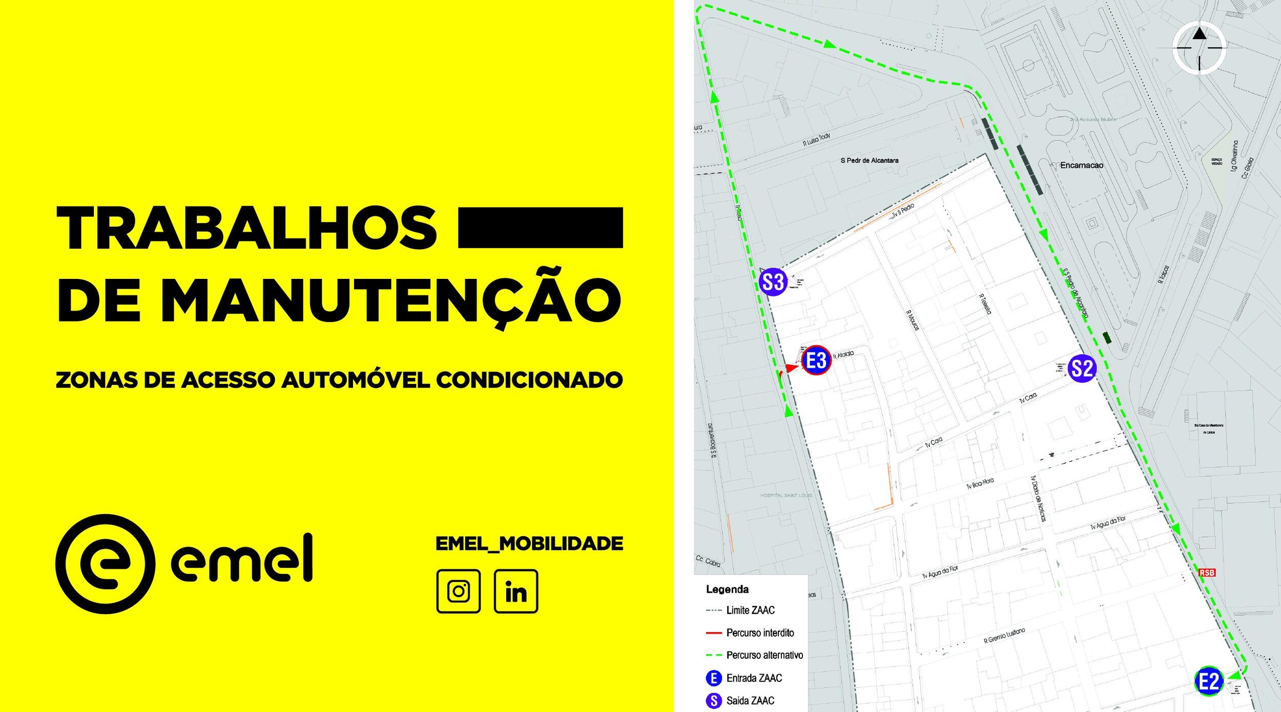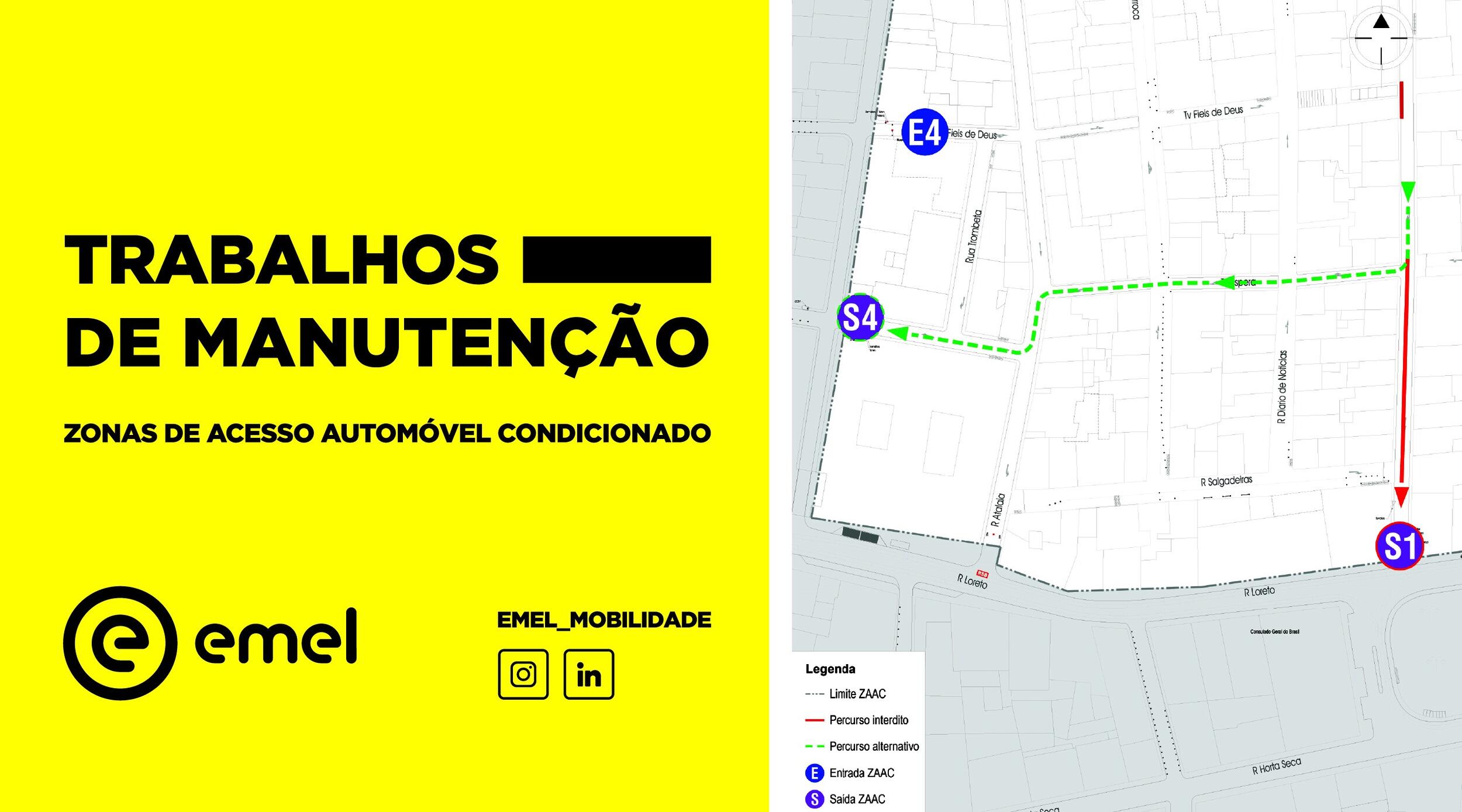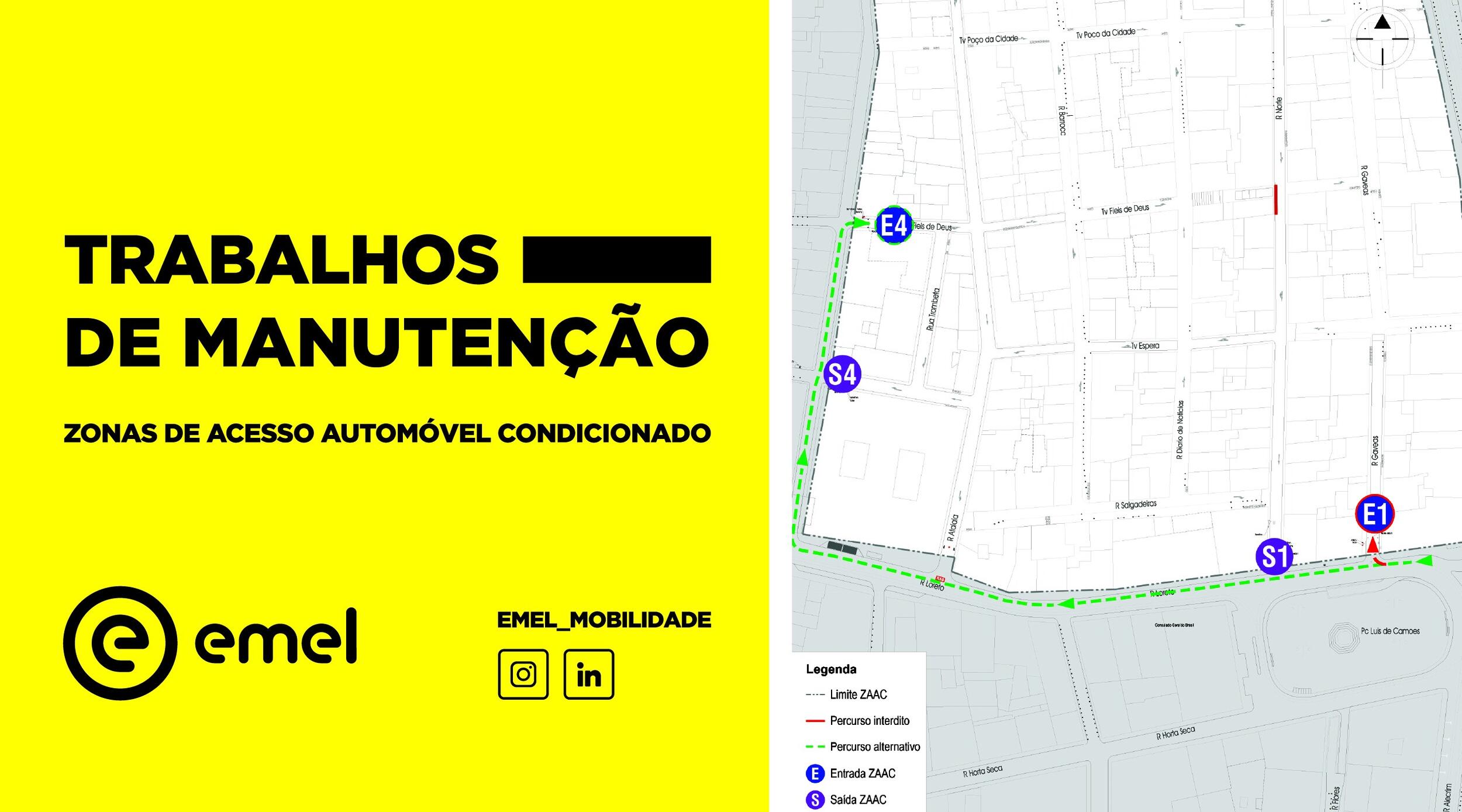 Segundo informação da EMEL, na próxima segunda-feira, dia 28 julho, irão ter início os trabalhos de manutenção nos acessos da ZAAC do BAirro Alto.