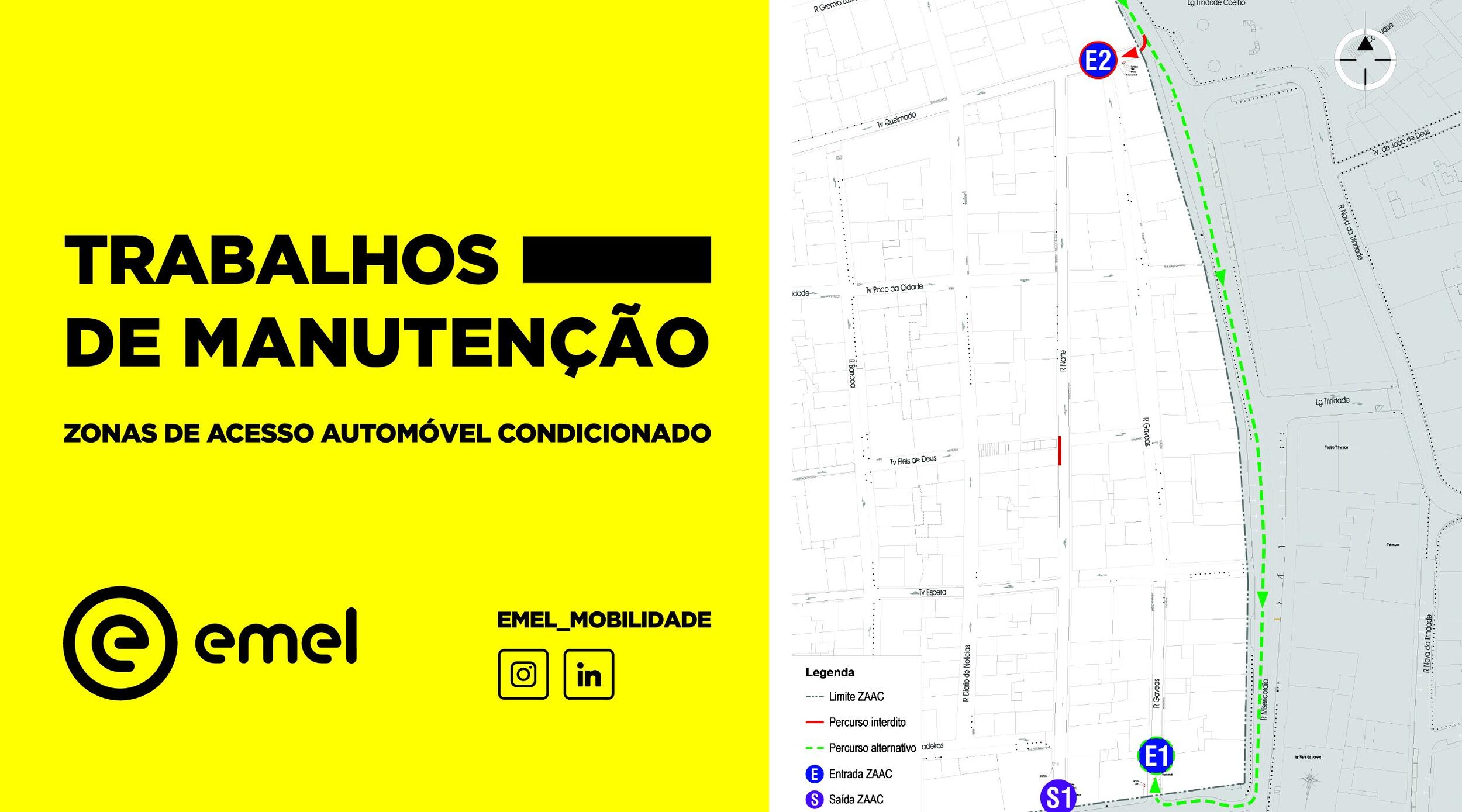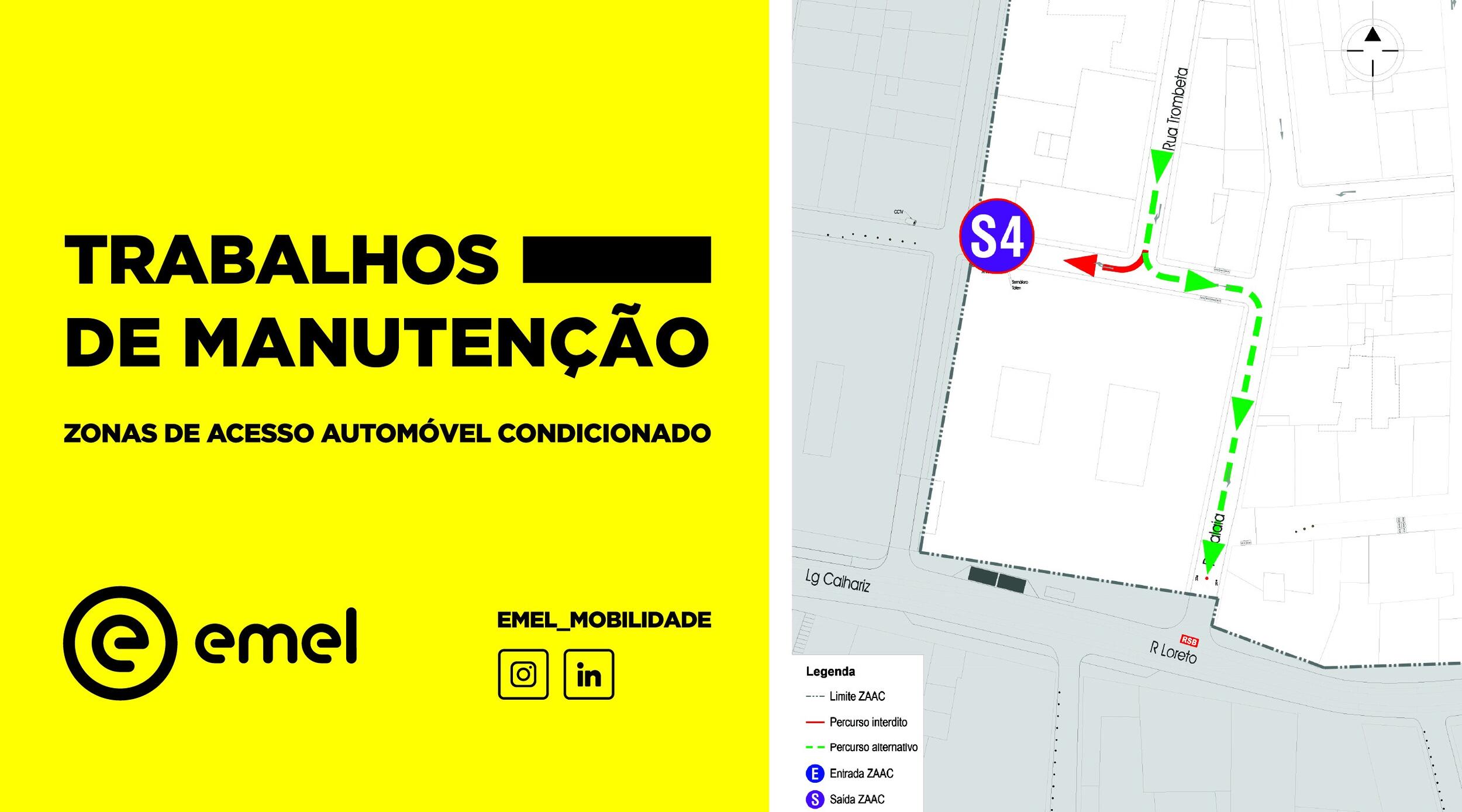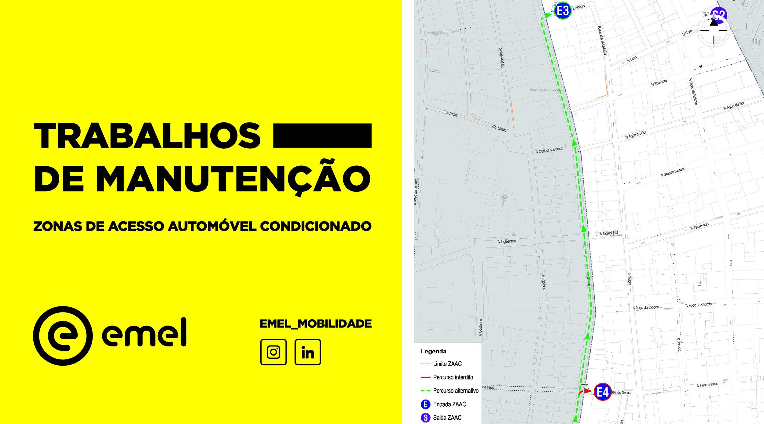 Segundo informação da EMEL, na próxima segunda-feira, dia 28 julho, irão ter início os trabalhos de manutenção nos acessos da ZAAC do BAirro Alto.