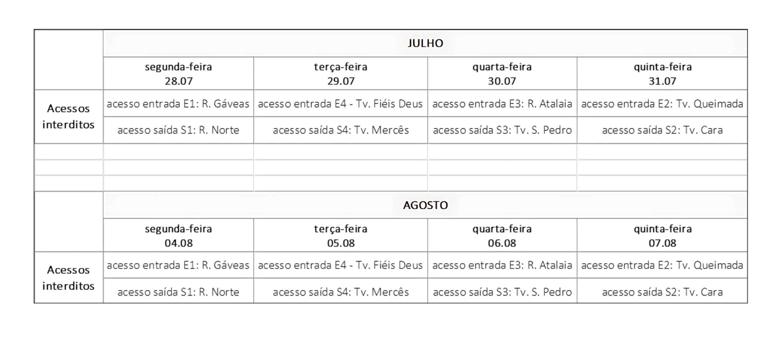 Consulte o cronograma de datas, bem como os planos de circulação, que propõem saídas e entradas alternativas no dia de intervenção / interdição dos respetivos acesso