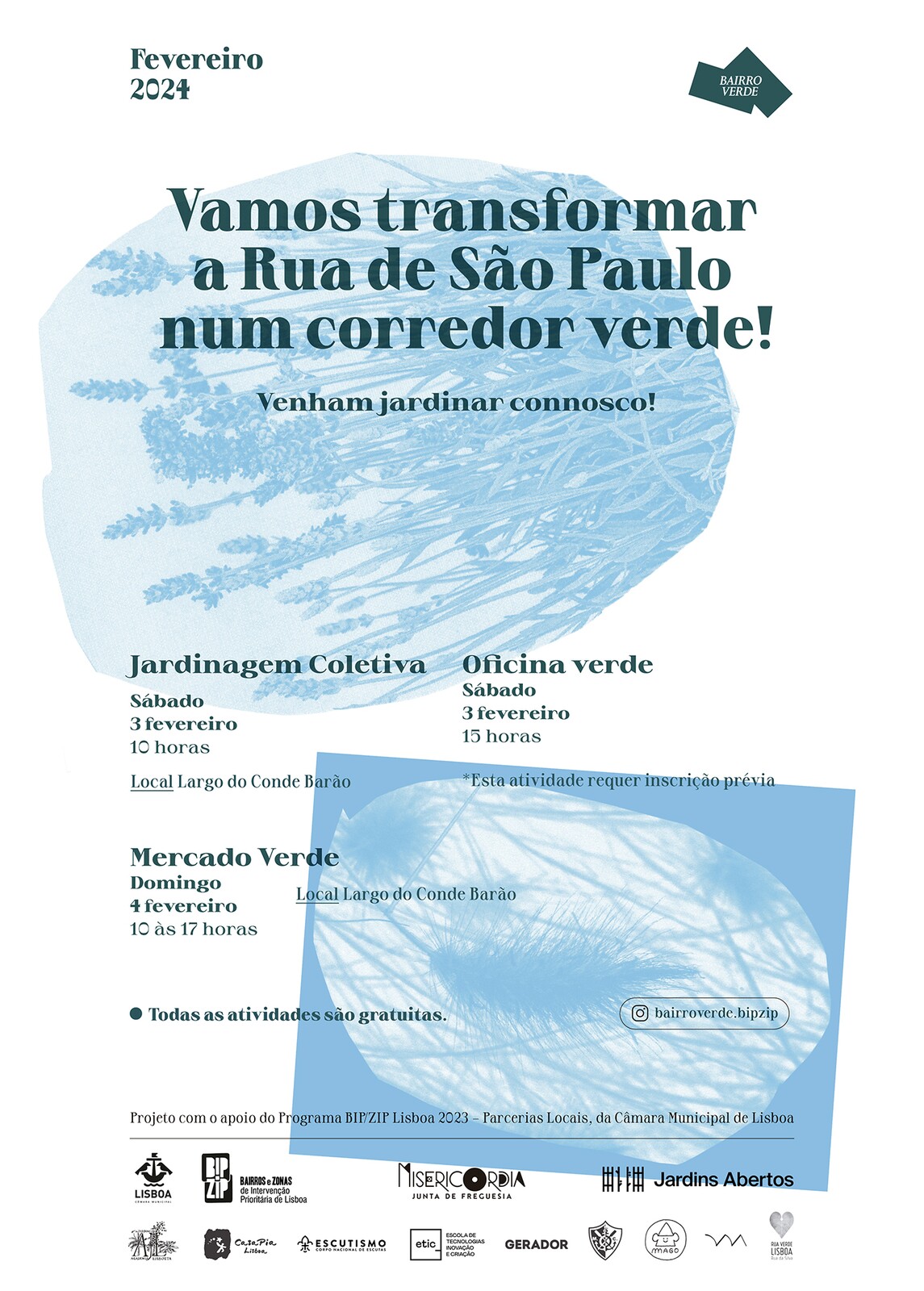 A Junta de Freguesia da Misericórdia e os parceiros do ‘Projeto Bairro Verde’, convidam-no a participar nos próximos dias 3 e 4 de fevereiro, na iniciativa que propõe criar um corredor verde na Rua de São Paulo e na Rua da Boavista, através do plantio de flores nas varandas.