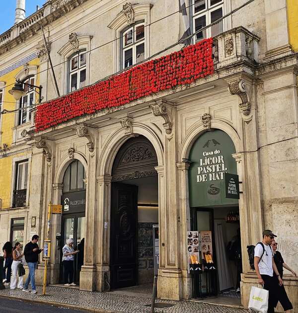 Um manto com 800 cravos de papel crepe cobrem a partir de hoje o varandim da Biblioteca Camões, ... -