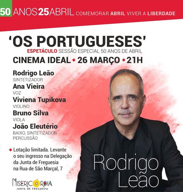 14 Março 2024Espetáculo de Rodrigo Leão para comemorar 25 de Abril